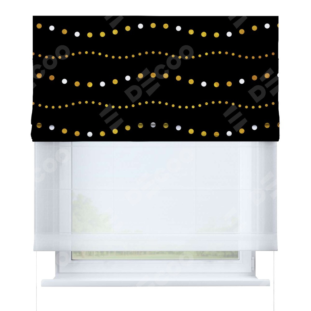 Римская штора день-ночь производителя «Cortin», используется для проёма, пошита из двух полотен, с лицевой блэкаут с нанесением сублимационной печати «Яркие огоньки», вторая ткань тюль (по стандарту комплектуется тюль белого цвета артикул V-01). Имеет универсальный механизм и подходит для монтажа: на потолок, на стену и в нишу.