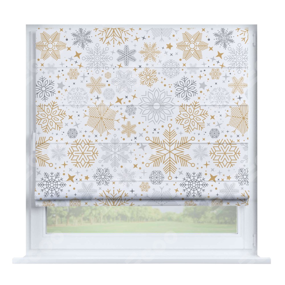 Римская штора производителя «Cortin», устанавливается на створку окна, пошита из ткани блэкаут с нанесением сублимационной печати «Снежное очарование». Штора шьётся по индивидуальным размерам, для данного типа римской шторы возможная ширина от 35 до 150 см., высота до 250 см.
