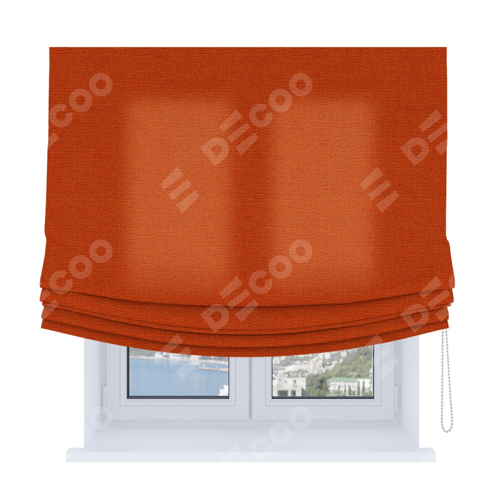 Римская штора Soft производителя «Cortin», используется для проёма, пошита из ткани лён терракотовый, артикул ткани 53440. Имеет универсальный механизм и подходит для монтажа: на потолок, на стену и в нишу. В отличие от стандартных римских штор, римская штора Soft не имеет горизонтальных вставок и нижнего отвеса. Это позволяет ткани произвольно драпироваться в свободные мягкие складки.