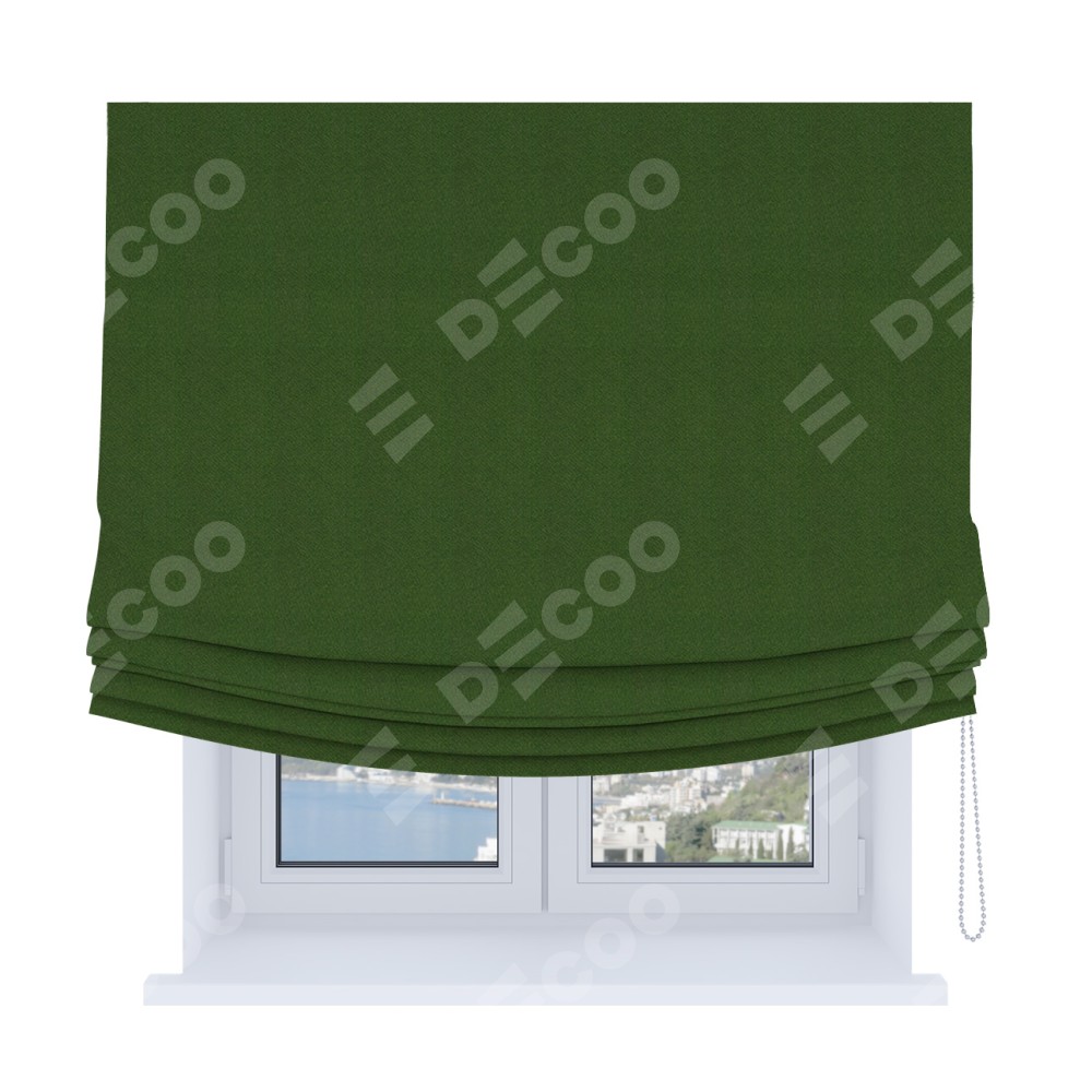 Римская штора Soft с мягкими складками, ткань блэкаут однотонный зелёный перламутр