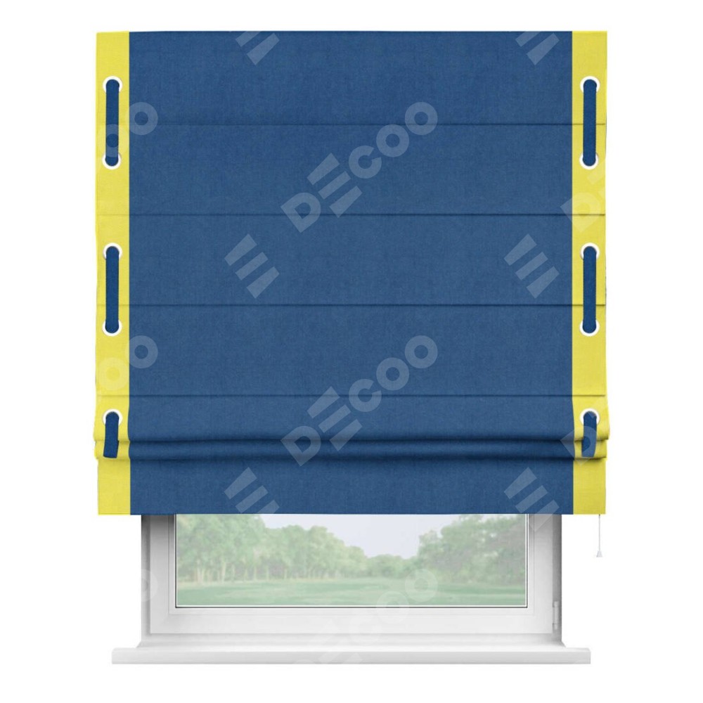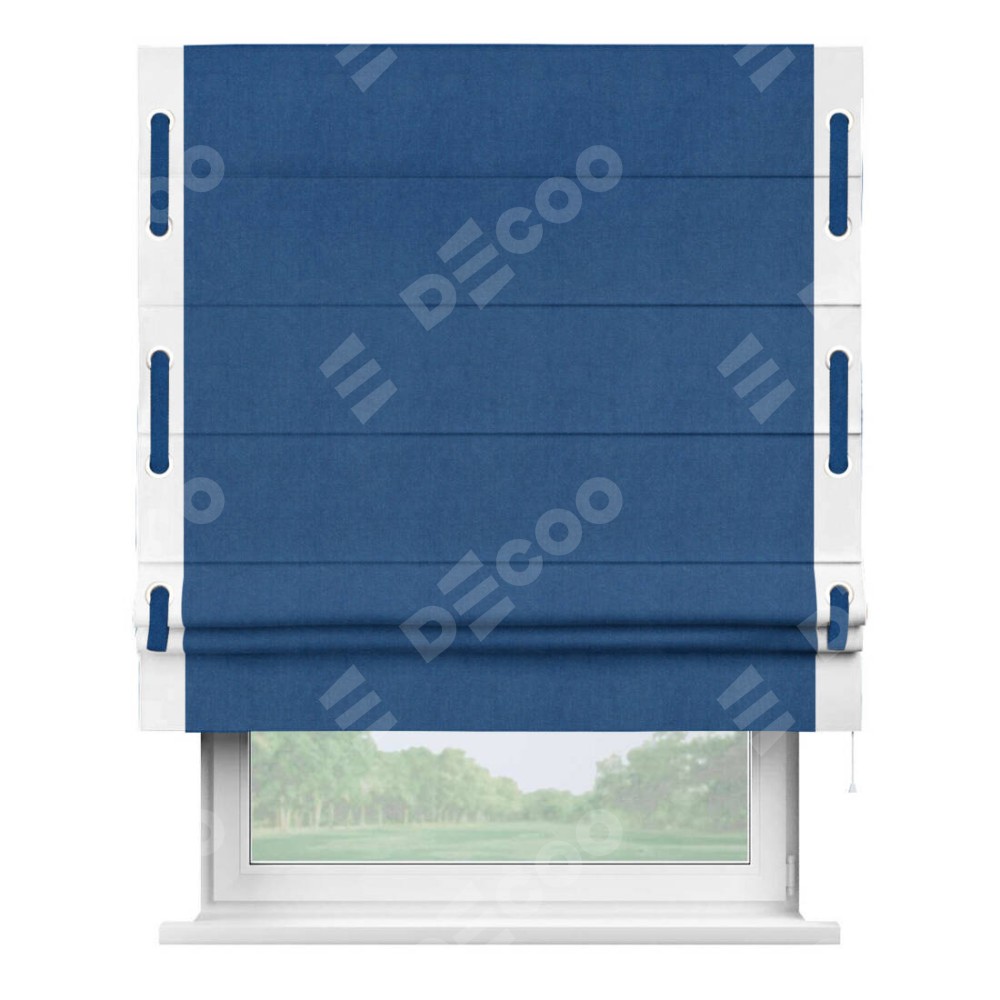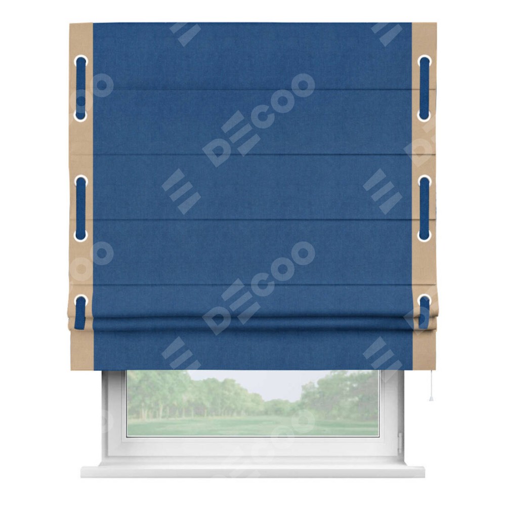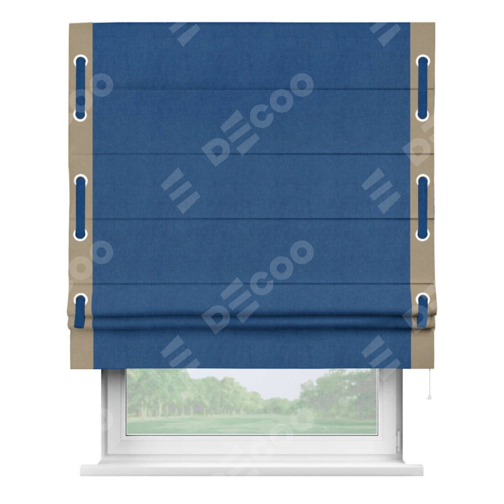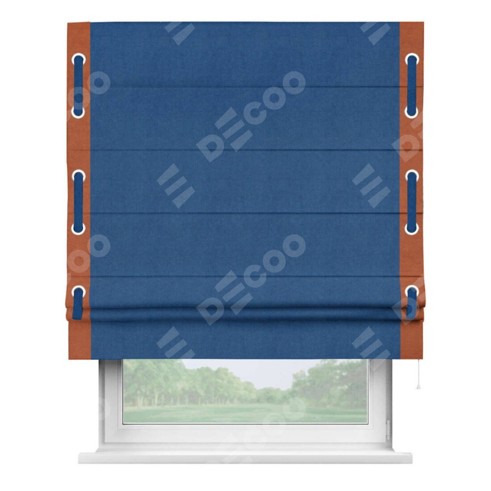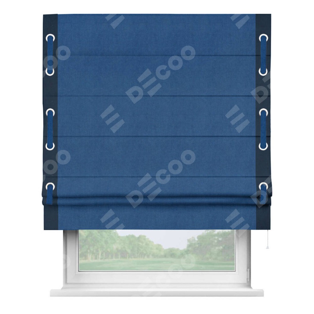Римская штора «Кортин» с кантом Стрим Дуо (люверсы с пояском), для проема, ткань вельвет синий