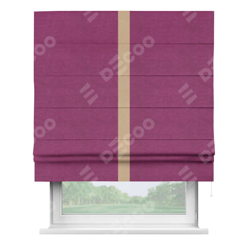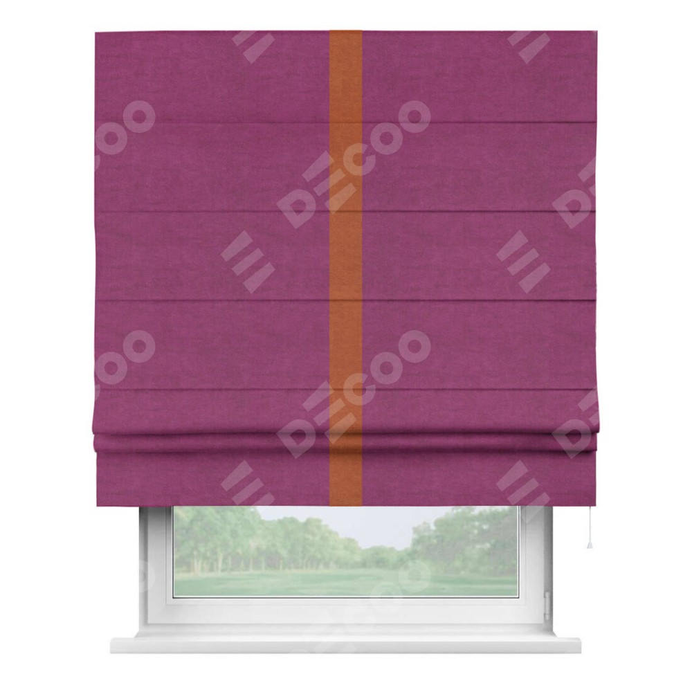 Римская штора «Кортин» с кантом Хайвэй, для проема, ткань вельвет фиолетовый