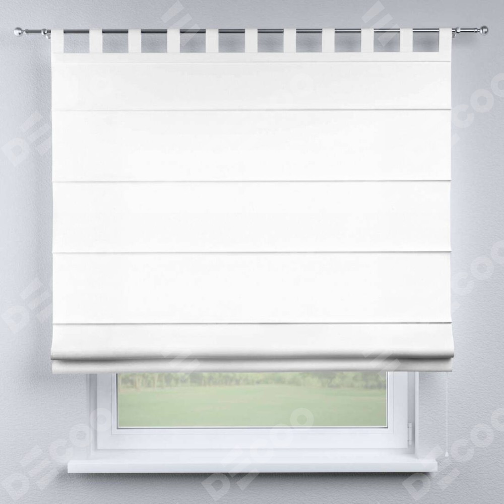 Римская штора производителя «Cortin», используется для проёма, пошита из ткани вельвет белый, артикул ткани 10810. Данная модель пошита на петлях, комплектуется на выбор круглым карнизом и подходит для монтажа на стену. Римская штора на петлях имеет простую систему регулировки высоты, отличительным преимуществом данной модели является простой способ монтажа. Достаточно повесить ее на трубу и штора готова!