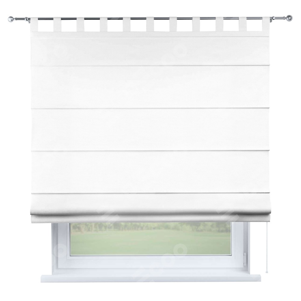 Римская штора производителя «Cortin», используется для проёма, пошита из ткани вельвет дымчато-белый, артикул ткани 85535. Данная модель пошита на петлях, комплектуется на выбор круглым карнизом и подходит для монтажа на стену. Римская штора на петлях имеет простую систему регулировки высоты, отличительным преимуществом данной модели является простой способ монтажа. Достаточно повесить ее на трубу и штора готова!