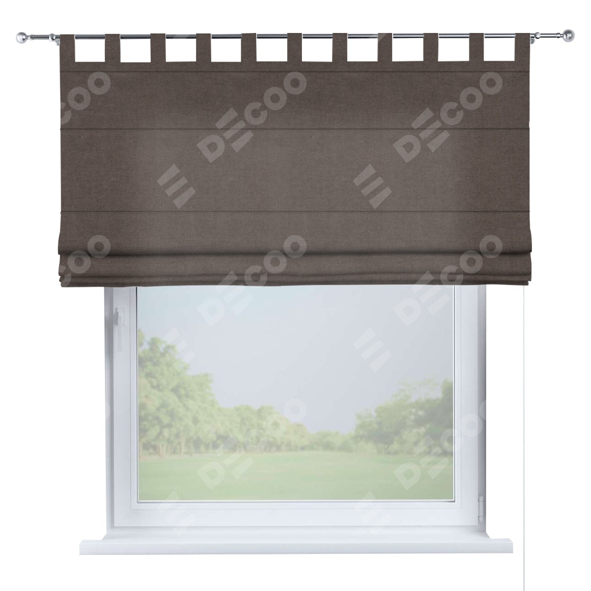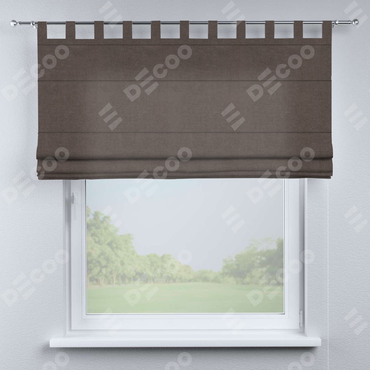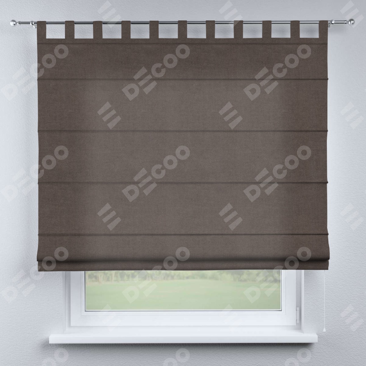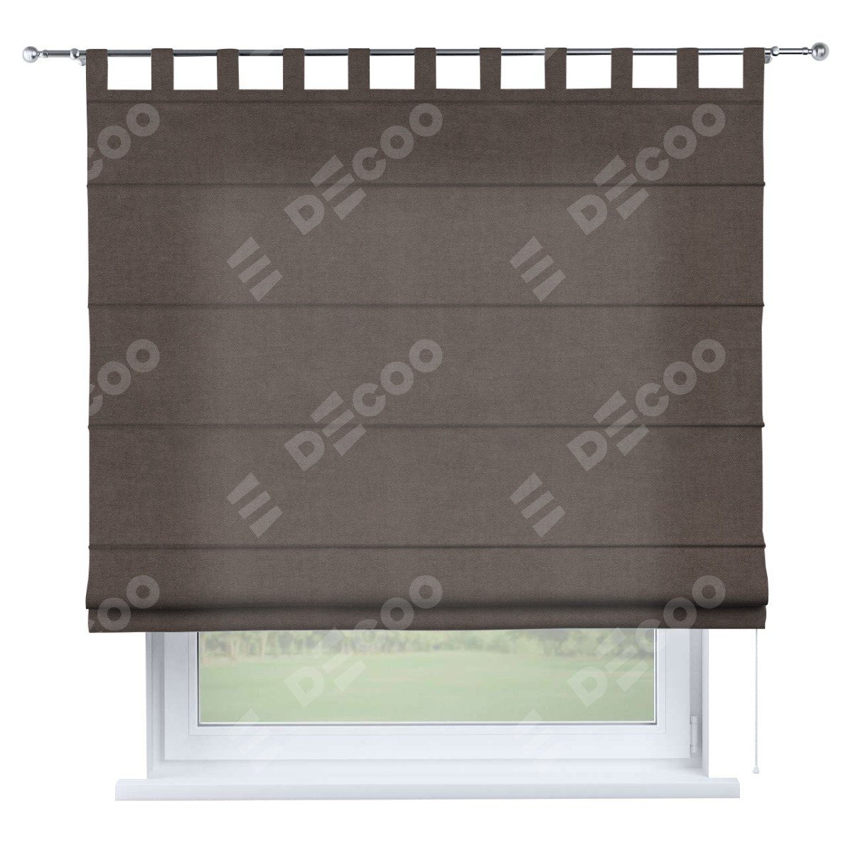 Римская штора производителя «Cortin», используется для проёма, пошита из ткани вельвет коричневый, артикул ткани 14135. Данная модель пошита на петлях, комплектуется на выбор круглым карнизом и подходит для монтажа на стену. Римская штора на петлях имеет простую систему регулировки высоты, отличительным преимуществом данной модели является простой способ монтажа. Достаточно повесить ее на трубу и штора готова!