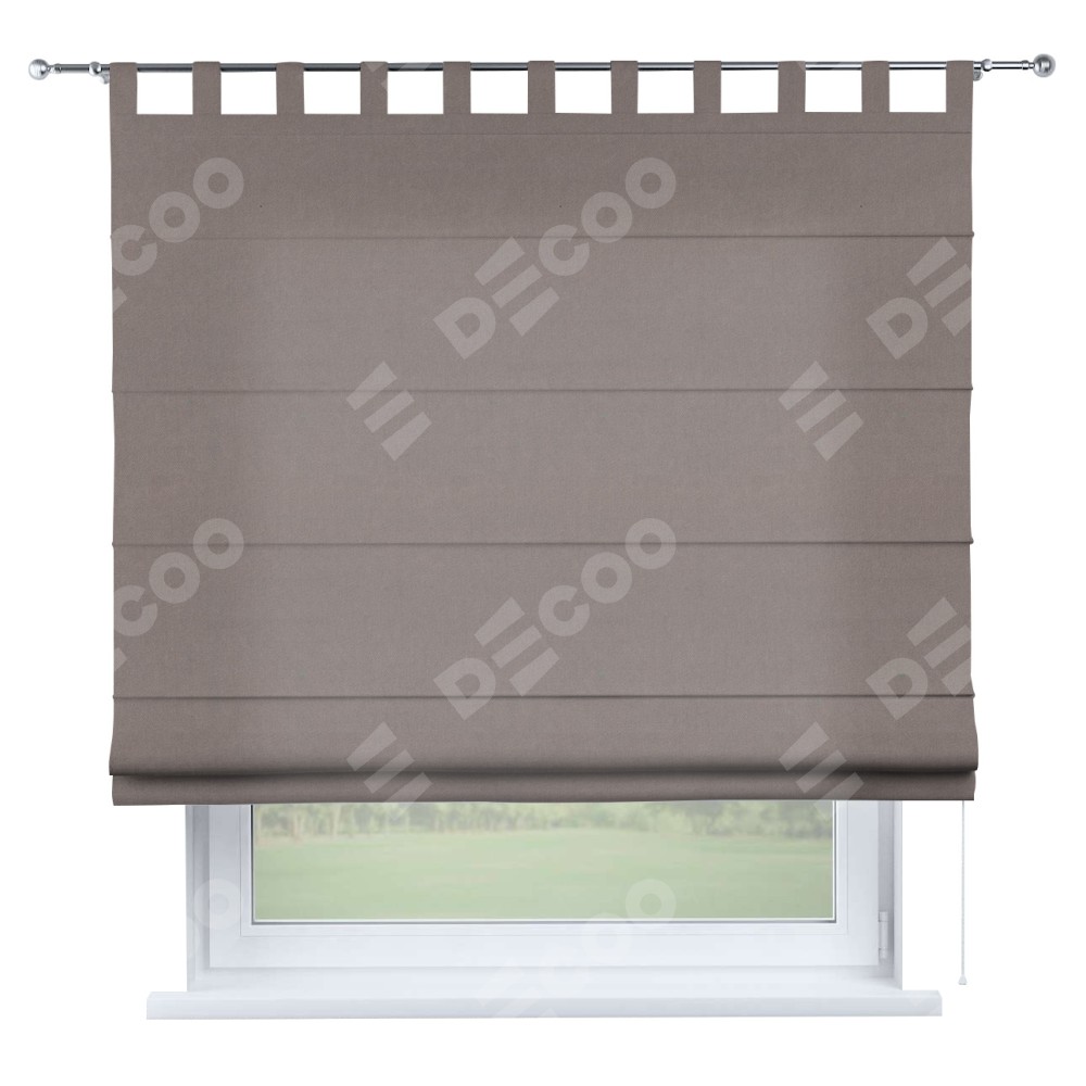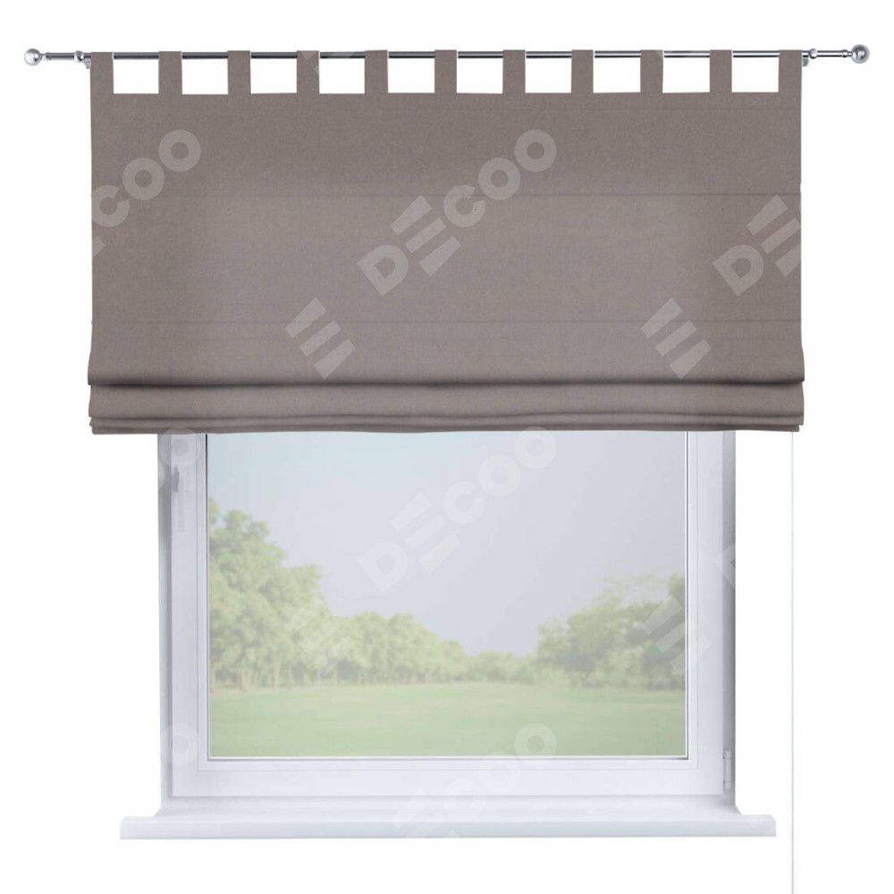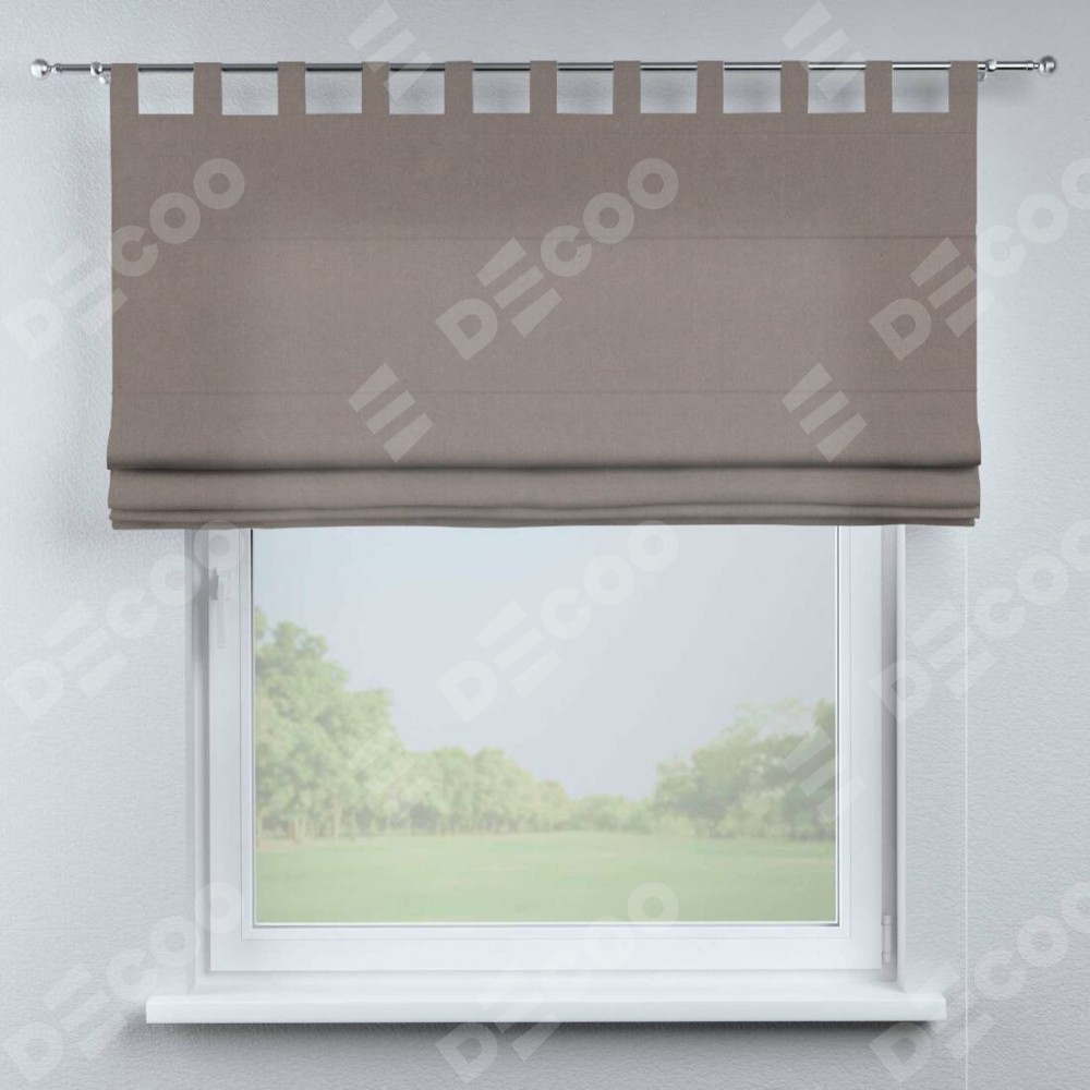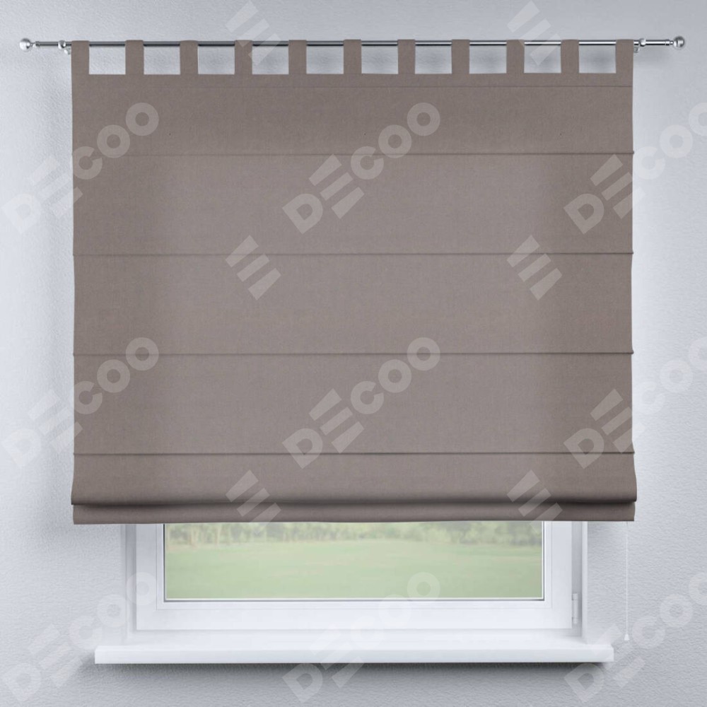 Римская штора производителя «Cortin», используется для проёма, пошита из ткани вельвет тёмно-бежевый, артикул ткани 82527. Данная модель пошита на петлях, комплектуется на выбор круглым карнизом и подходит для монтажа на стену. Римская штора на петлях имеет простую систему регулировки высоты, отличительным преимуществом данной модели является простой способ монтажа. Достаточно повесить ее на трубу и штора готова!