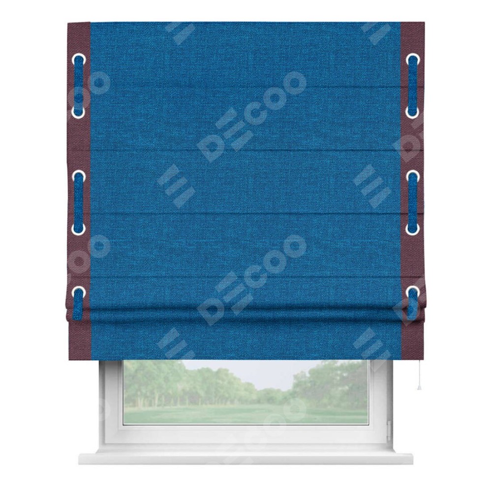 Римская штора «Кортин» с кантом Стрим Дуо (люверсы с пояском), для проема, ткань лён синий