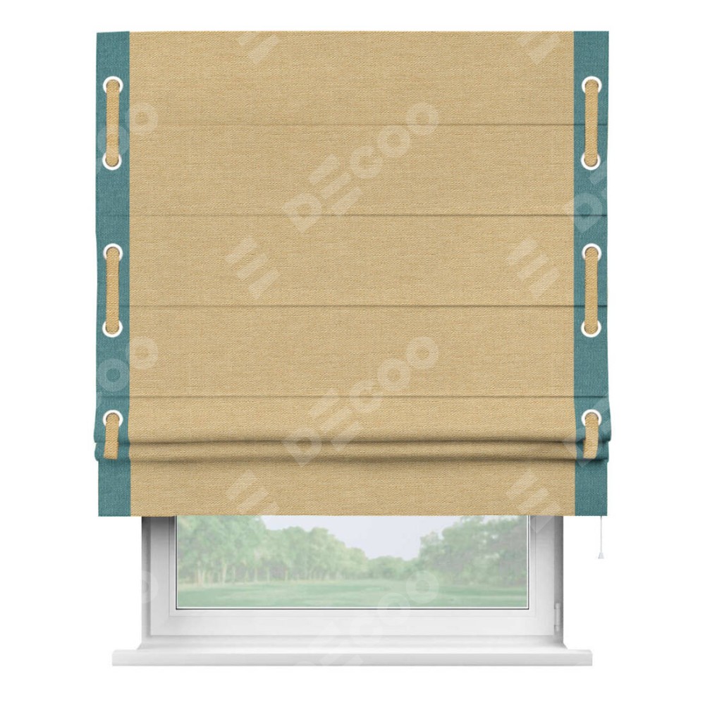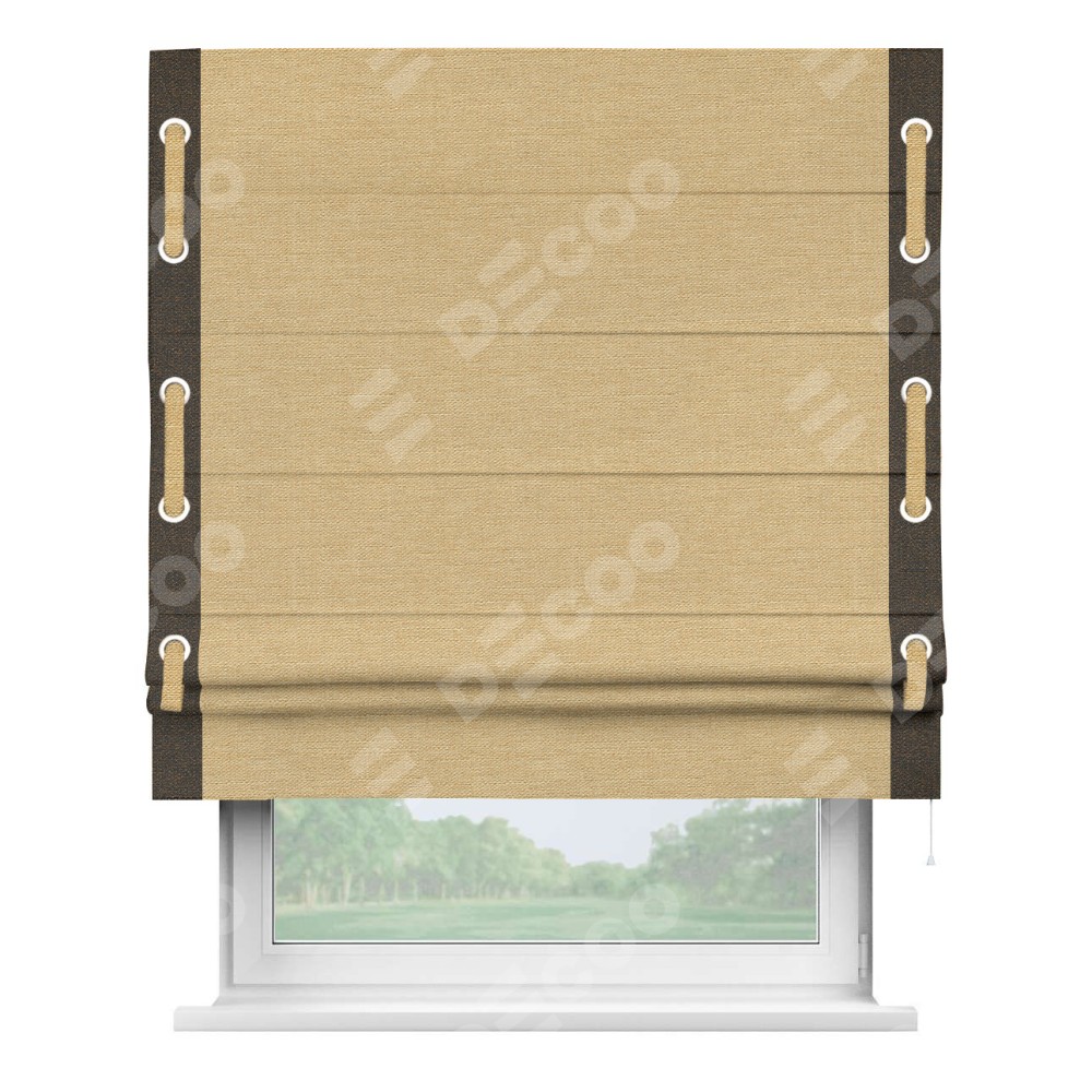 Римская штора «Кортин» с кантом Стрим Дуо (люверсы с пояском), для проема, ткань лён темно-бежевый