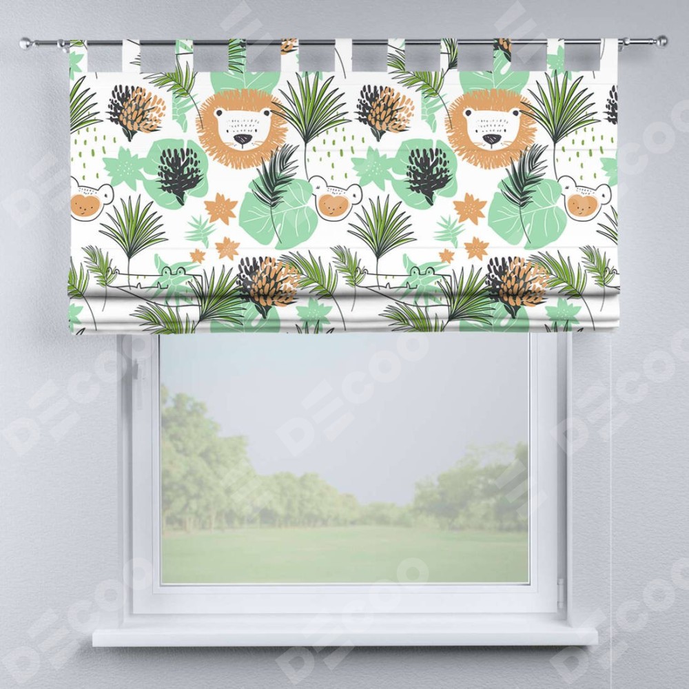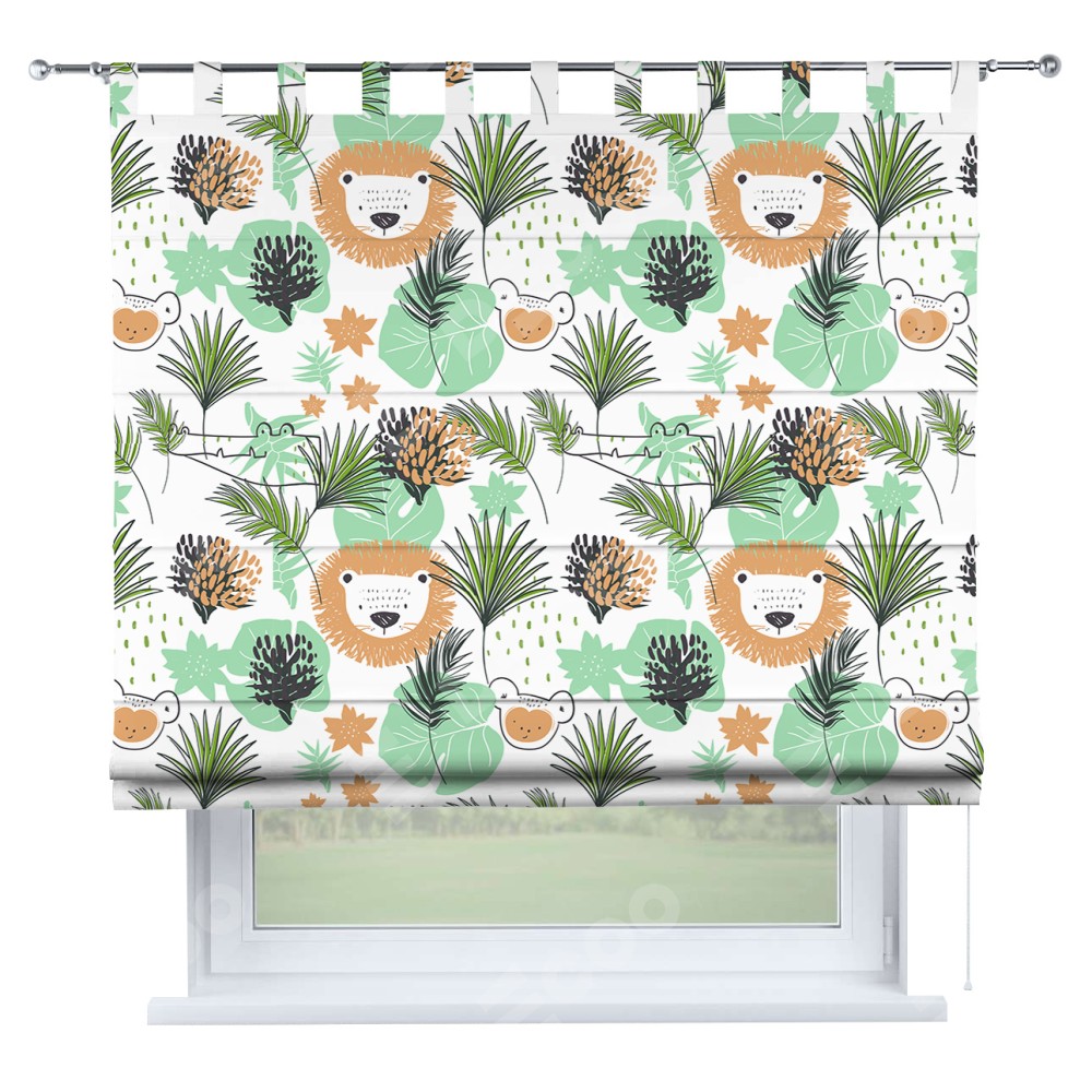 Римская штора производителя «Cortin», используется для проёма, пошита из ткани блэкаут с нанесением сублимационной печати «Животные из джунглей». Данная модель пошита на петлях, комплектуется на выбор круглым карнизом и подходит для монтажа на стену. Римская штора на петлях имеет простую систему регулировки высоты, отличительным преимуществом данной модели является простой способ монтажа. Достаточно повесить ее на трубу и штора готова!