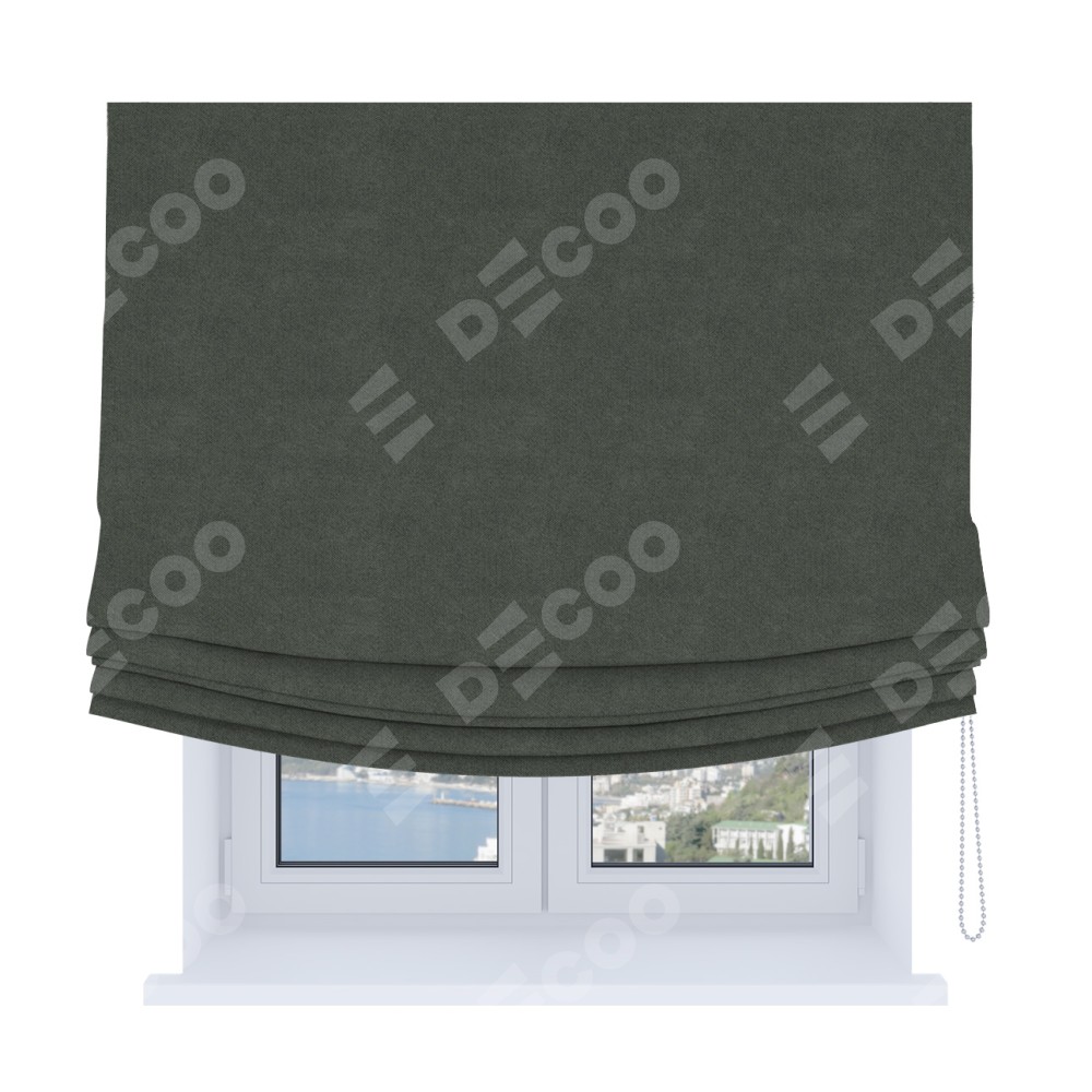 Римская штора Soft производителя «Cortin», используется для проёма, пошита из ткани cotton блэкаут серый, артикул ткани 35279. Имеет универсальный механизм и подходит для монтажа: на потолок, на стену и в нишу. В отличие от стандартных римских штор, римская штора Soft не имеет горизонтальных вставок и нижнего отвеса. Это позволяет ткани произвольно драпироваться в свободные мягкие складки.
