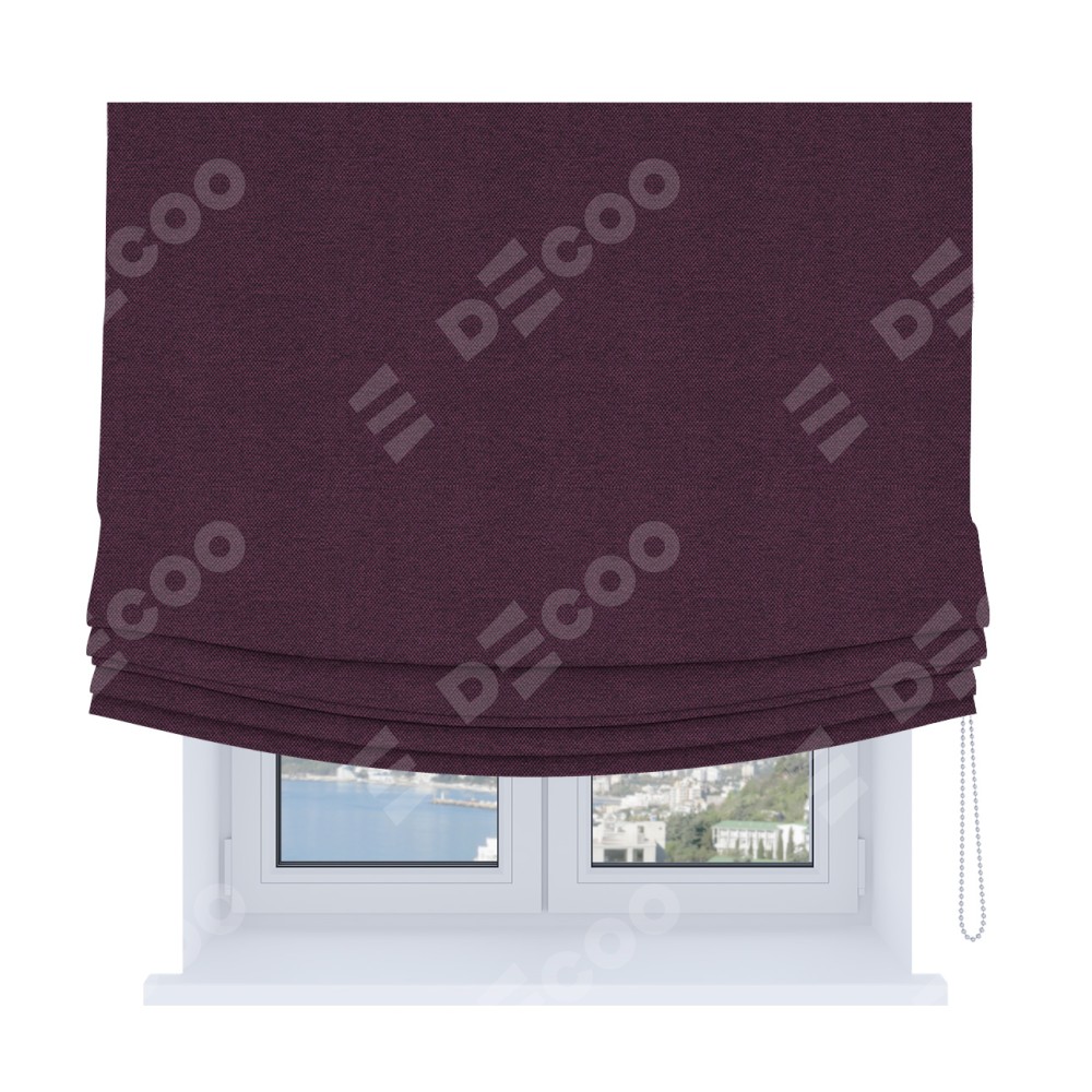 Римская штора Soft производителя «Cortin», используется для проёма, пошита из ткани лён димаут фиолетовый, артикул ткани 8817. Имеет универсальный механизм и подходит для монтажа: на потолок, на стену и в нишу. В отличие от стандартных римских штор, римская штора Soft не имеет горизонтальных вставок и нижнего отвеса. Это позволяет ткани произвольно драпироваться в свободные мягкие складки.