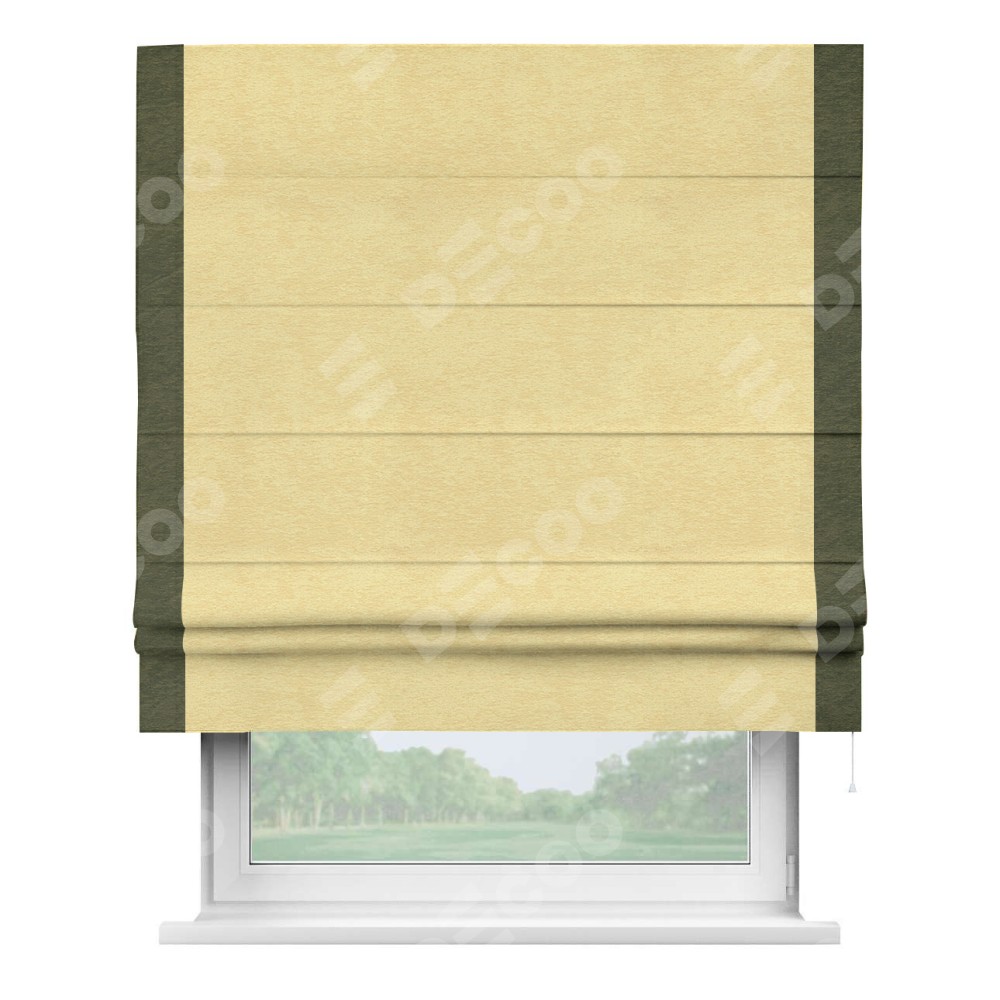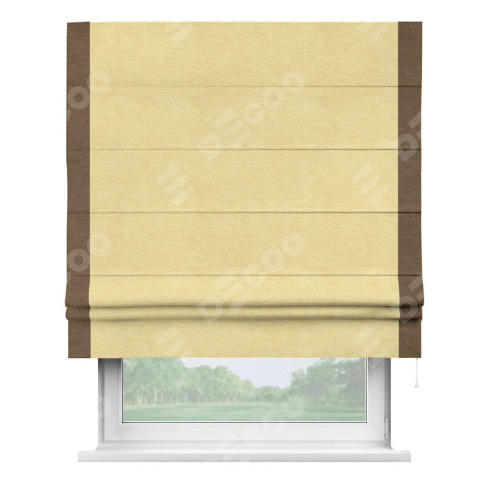 Римская штора «Кортин» с кантом Стрим Дуо, для проема, ткань софт однотонный золотой