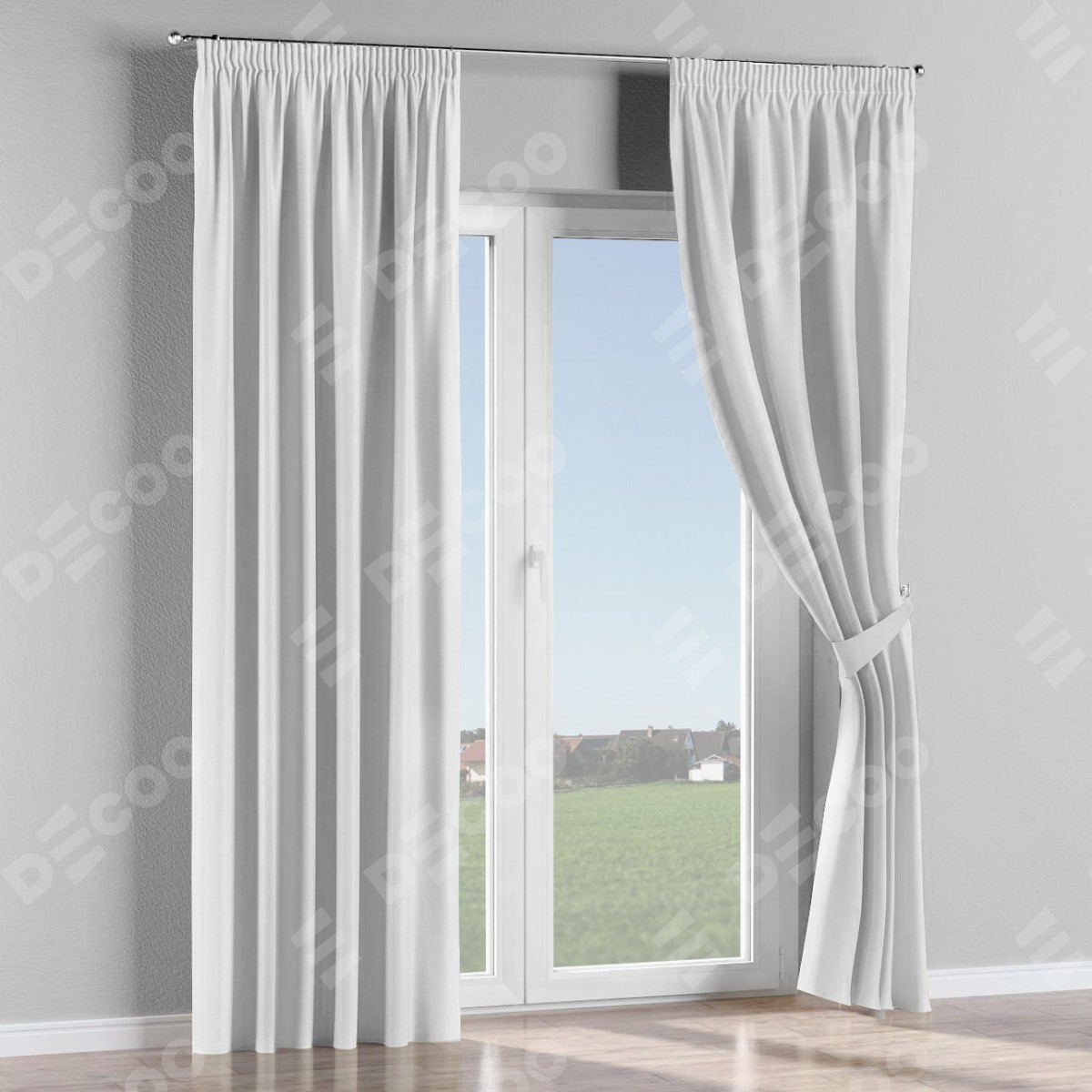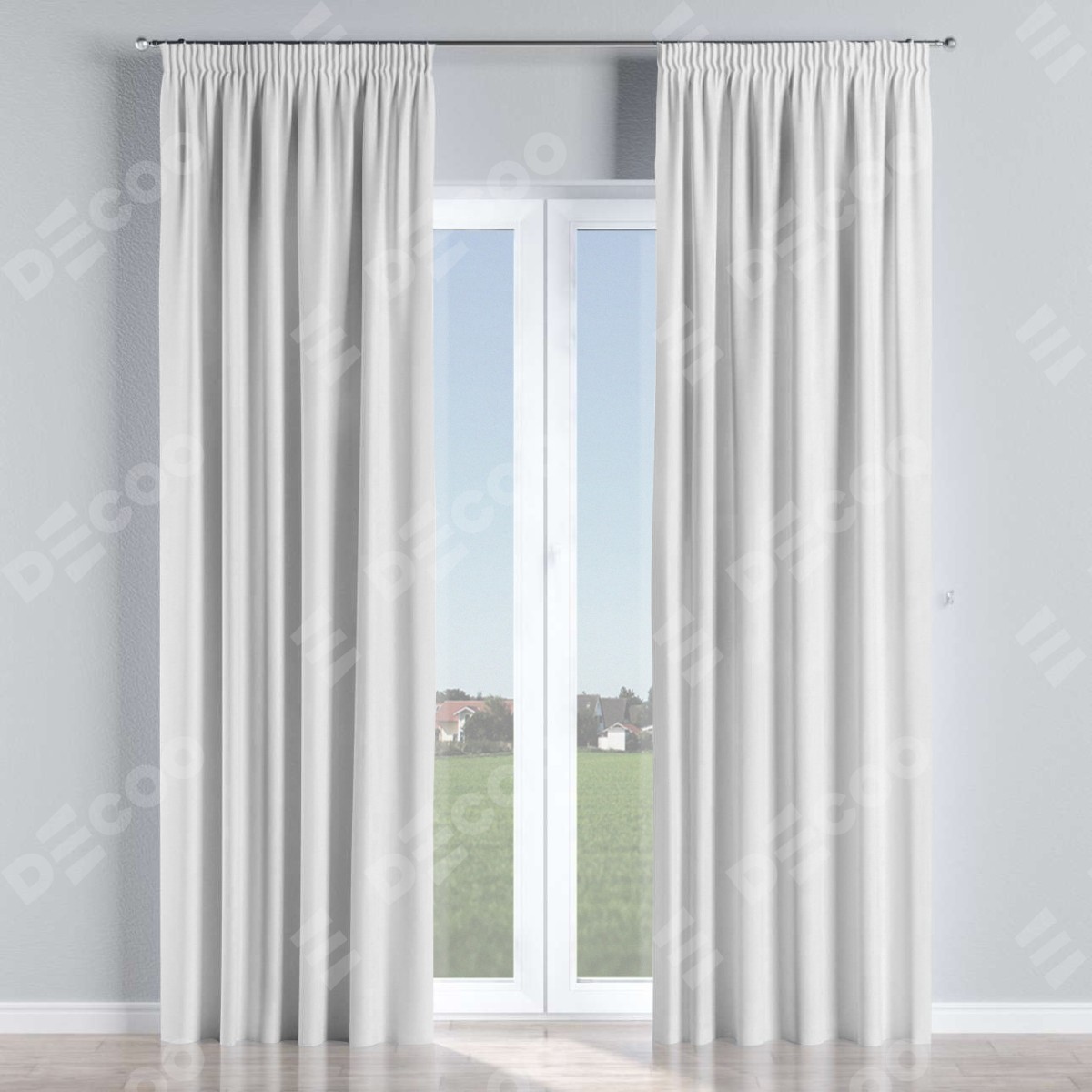 Комплект прямых штор, от производителя «Cortin», пошиты из ткани лён белоснежный, артикул ткани 7438. С изнаночной стороны в верхней части штор пристрачивается шторная лента с декоративными складками «Карандаш». Для создания элегантных складок прямые шторы шьются по стандарту с коэффициентом 1:2 (на 100 см. ширины проёма 200 см. ширины ткани).