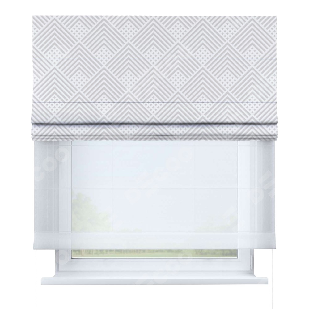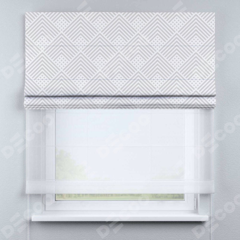 Римская штора день-ночь производителя «Cortin», используется для проёма, пошита из двух полотен, с лицевой блэкаут с нанесением сублимационной печати «Кристалл», вторая ткань тюль (по стандарту комплектуется тюль белого цвета артикул V-01). Имеет универсальный механизм и подходит для монтажа: на потолок, на стену и в нишу.