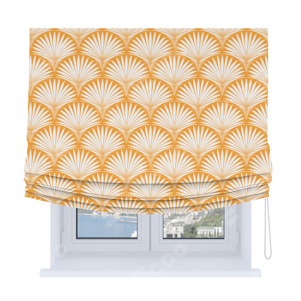 Римская штора Soft с мягкими складками, «Арт-деко листья желтый»