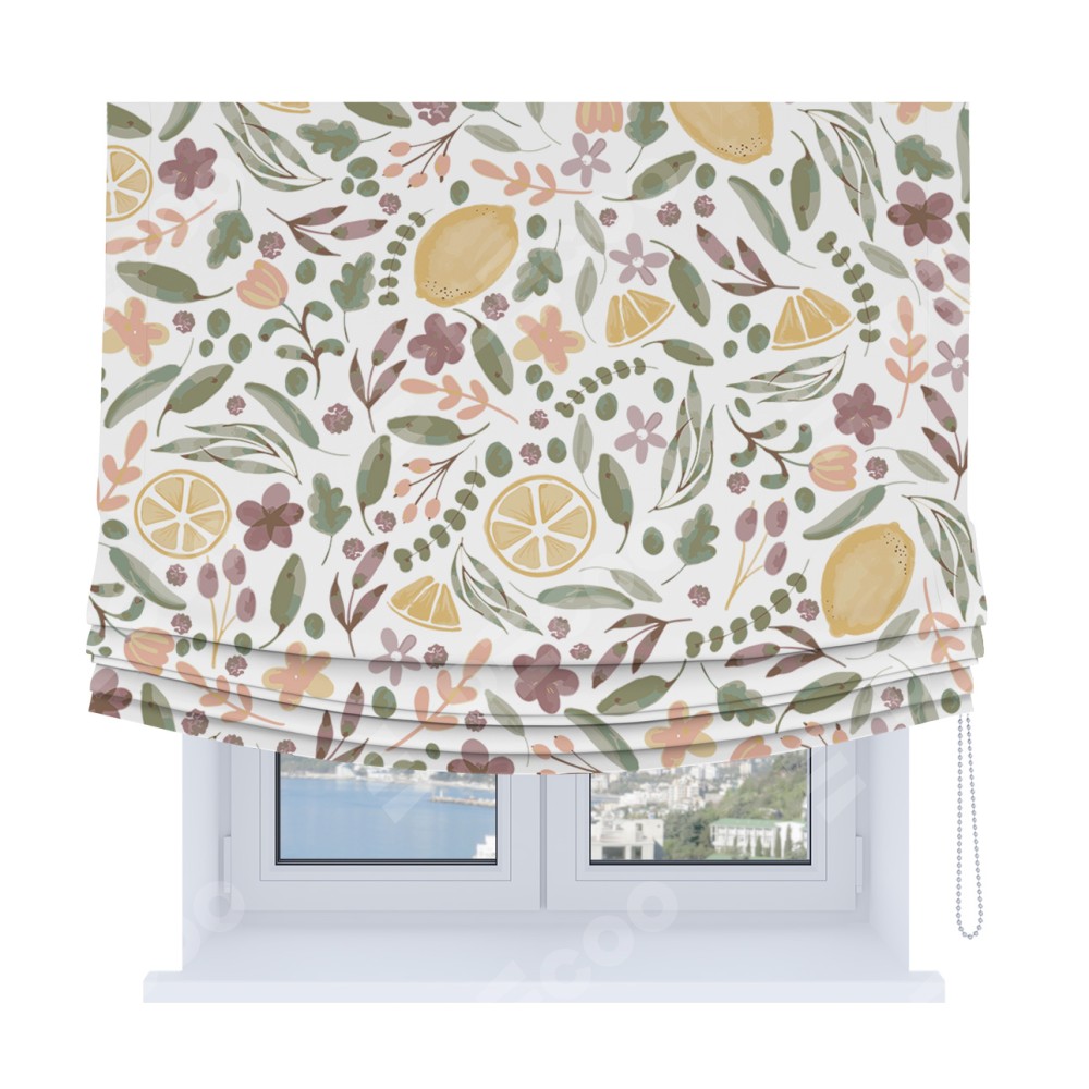 Римская штора Soft с мягкими складками, «Лимоны и цветы»