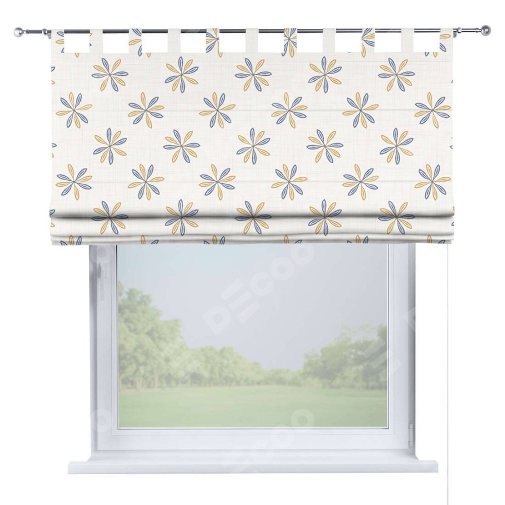 Римская штора производителя «Cortin», используется для проёма, пошита из ткани блэкаут с нанесением сублимационной печати «Ромашки кантри». Данная модель пошита на петлях, комплектуется на выбор круглым карнизом и подходит для монтажа на стену. Римская штора на петлях имеет простую систему регулировки высоты, отличительным преимуществом данной модели является простой способ монтажа. Достаточно повесить ее на трубу и штора готова!