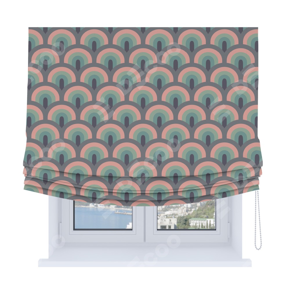 Римская штора Soft производителя «Cortin», используется для проёма, пошита из ткани блэкаут с нанесением сублимационной печати «Ретро орнамент». Имеет универсальный механизм и подходит для монтажа: на потолок, на стену и в нишу. В отличие от стандартных римских штор, римская штора Soft не имеет горизонтальных вставок и нижнего отвеса. Это позволяет ткани произвольно драпироваться в свободные мягкие складки.