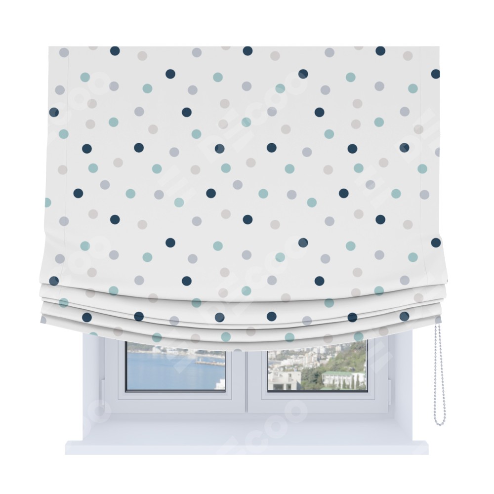Римская штора Soft производителя «Cortin», используется для проёма, пошита из ткани блэкаут с нанесением сублимационной печати «Точки». Имеет универсальный механизм и подходит для монтажа: на потолок, на стену и в нишу. В отличие от стандартных римских штор, римская штора Soft не имеет горизонтальных вставок и нижнего отвеса. Это позволяет ткани произвольно драпироваться в свободные мягкие складки.