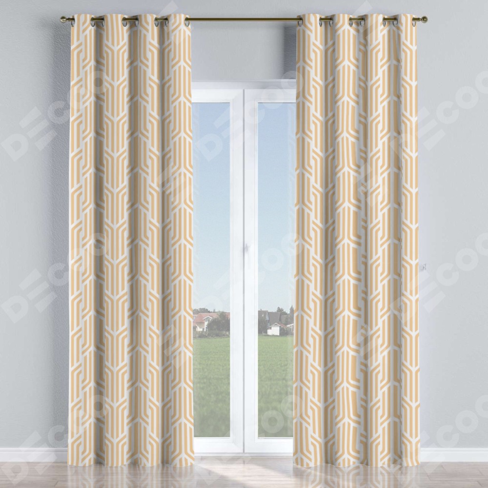Длина карниза равна ширине окна плюс 30 — 50 см. При расчете длины штанги наконечники не учитываются. Для определения высоты штор измерьте расстояние от верхнего края карниза до пола и отнимите 1 см. Прибавьте 4 см  (гребешок над люверсом) Это габаритный размер вашего изделия.