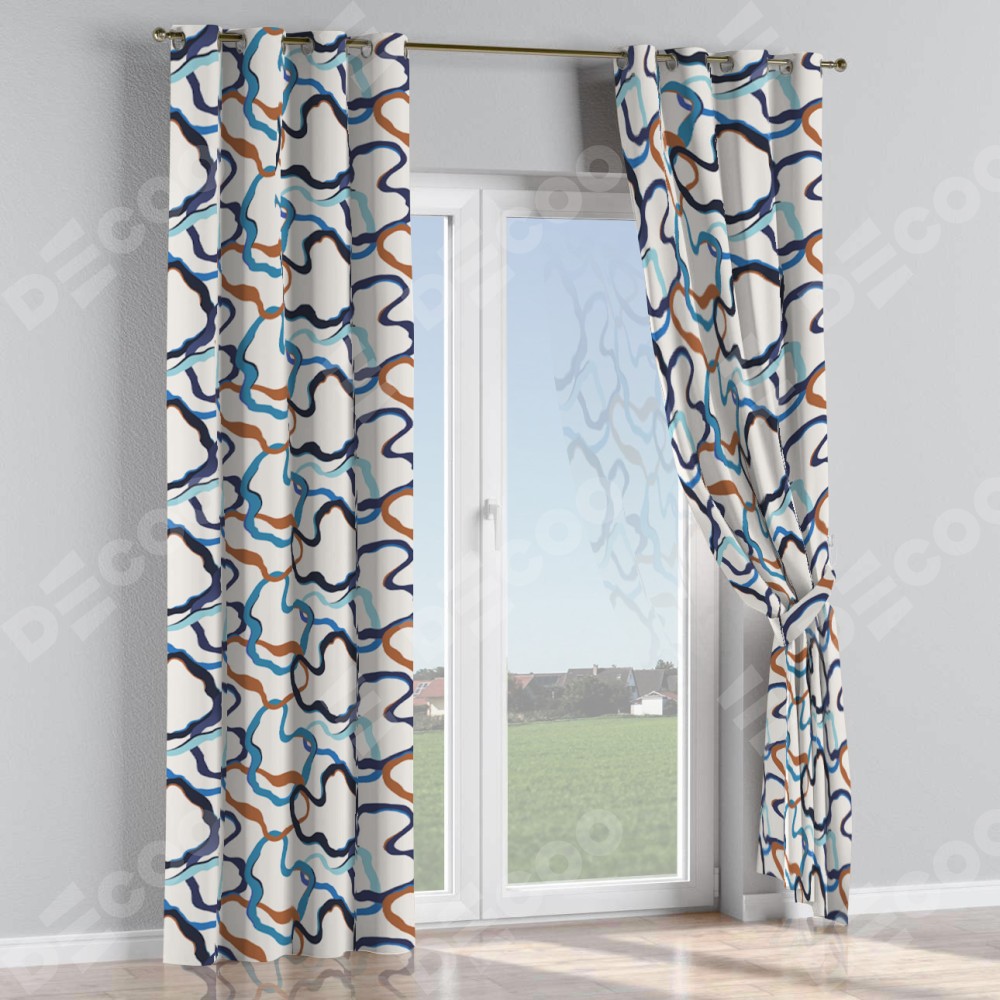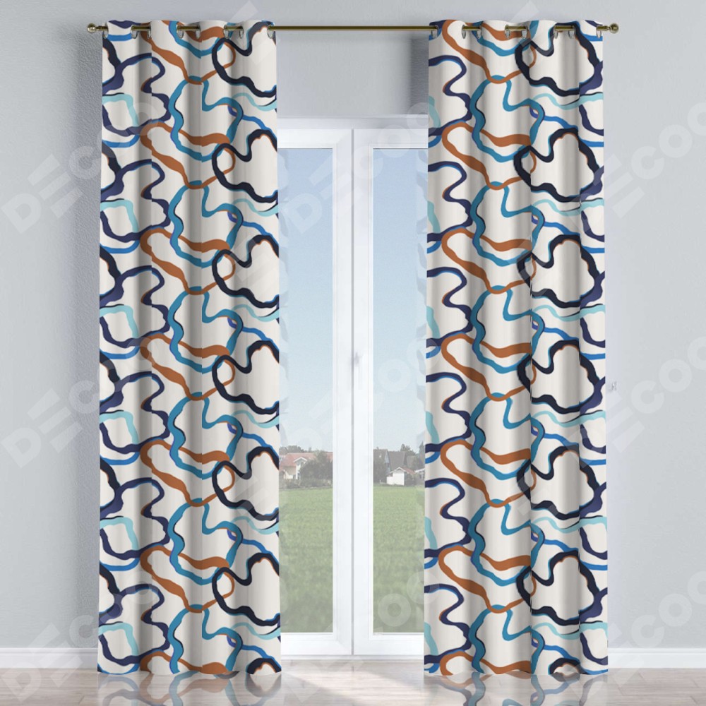Комплект прямых штор, от производителя «Cortin», пошиты из ткани блэкаут с нанесением сублимационной печати «Волнистые ленты». Данная модель пошита на люверсах, комплектуется на выбор круглым карнизом и подходит для монтажа на стену или потолок. Прямые шторы на люверсах шьются по стандарту с коэффициентом 1/2 (на 100 см. ширины проёма 200 см. ширины ткани), отличительным преимуществом данной модели является простой способ монтажа. Достаточно повесить ее на трубу и штора готова!