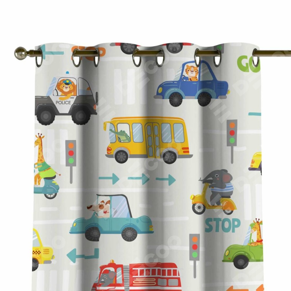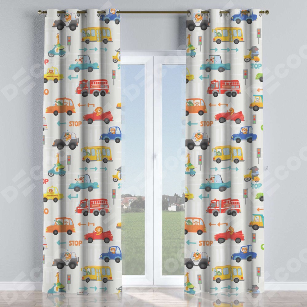 Комплект прямых штор, от производителя «Cortin», пошиты из ткани блэкаут с нанесением сублимационной печати «Дорожные правила». Данная модель пошита на люверсах, комплектуется на выбор круглым карнизом и подходит для монтажа на стену или потолок. Прямые шторы на люверсах шьются по стандарту с коэффициентом 1/2 (на 100 см. ширины проёма 200 см. ширины ткани), отличительным преимуществом данной модели является простой способ монтажа. Достаточно повесить ее на трубу и штора готова!