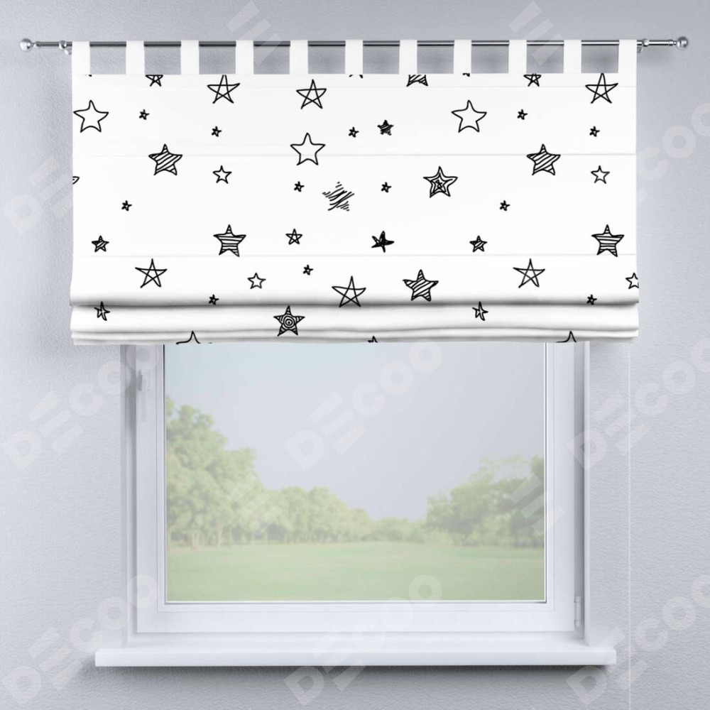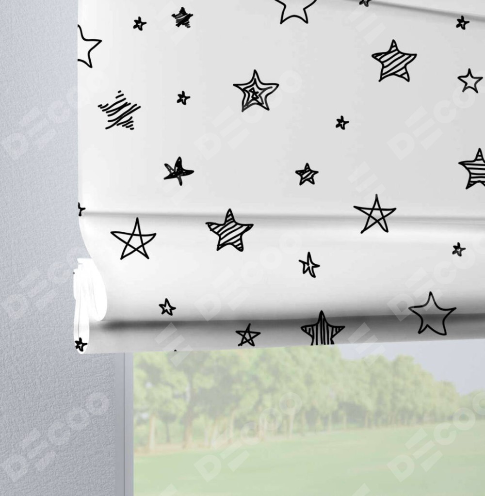 Римская штора производителя «Cortin», используется для проёма, пошита из ткани блэкаут с нанесением сублимационной печати «Звезды». Данная модель пошита на петлях, комплектуется на выбор круглым карнизом и подходит для монтажа на стену. Римская штора на петлях имеет простую систему регулировки высоты, отличительным преимуществом данной модели является простой способ монтажа. Достаточно повесить ее на трубу и штора готова!