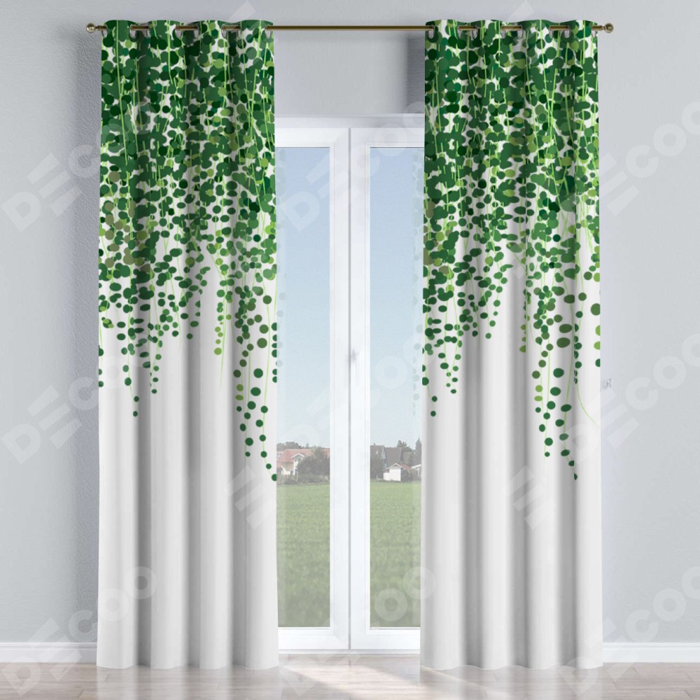Комплект прямых штор, от производителя «Cortin», пошиты из ткани блэкаут с нанесением сублимационной печати «Зелёный занавес». Данная модель пошита на люверсах, комплектуется на выбор круглым карнизом и подходит для монтажа на стену или потолок. Прямые шторы на люверсах шьются по стандарту с коэффициентом 1/2 (на 100 см. ширины проёма 200 см. ширины ткани), отличительным преимуществом данной модели является простой способ монтажа. Достаточно повесить ее на трубу и штора готова!