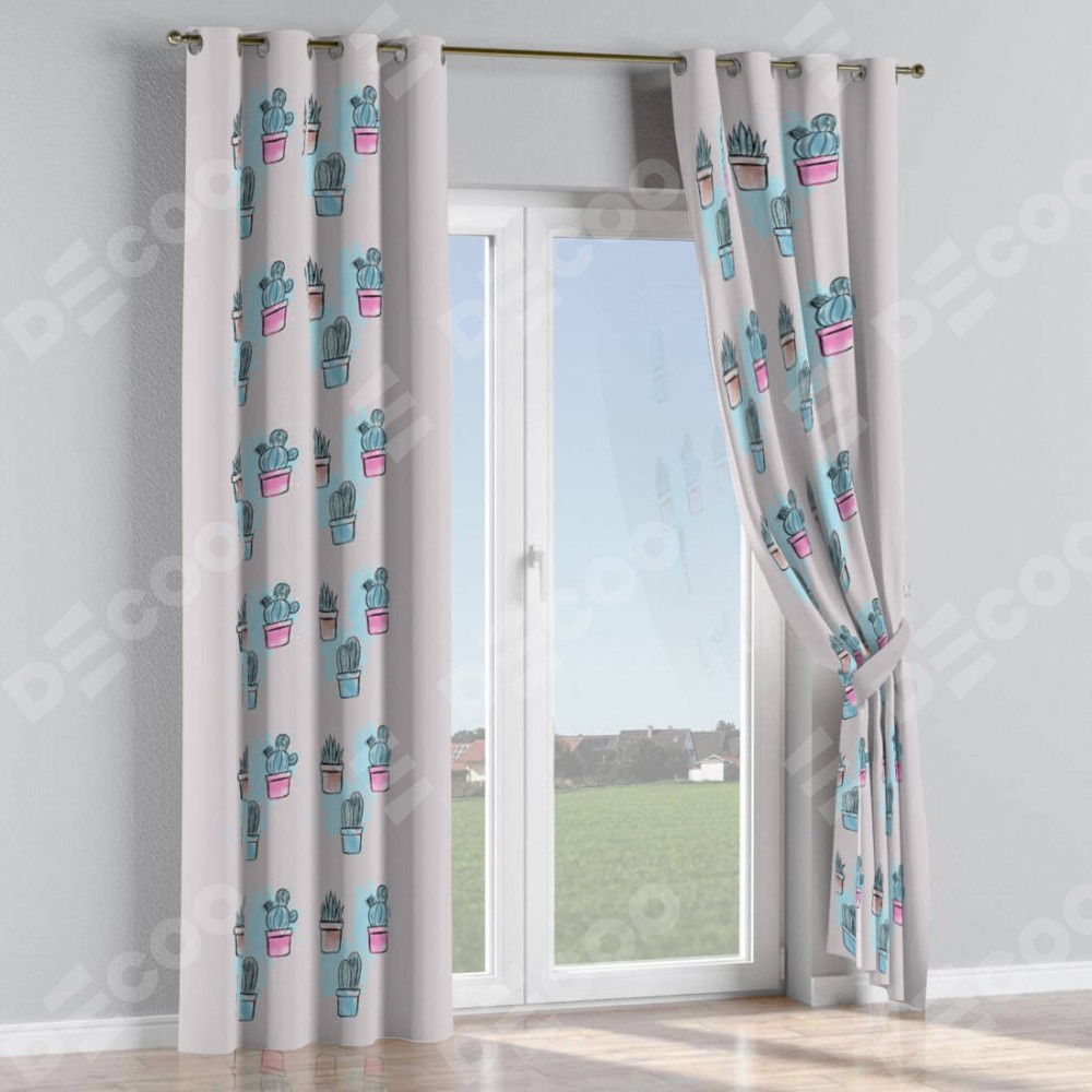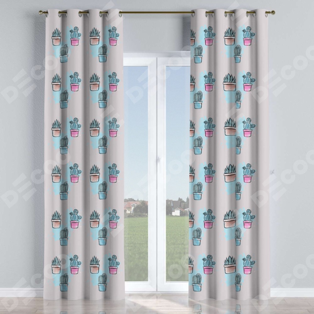 Комплект прямых штор, от производителя «Cortin», пошиты из ткани блэкаут с нанесением сублимационной печати «Кактусовая оранжерея». Данная модель пошита на люверсах, комплектуется на выбор круглым карнизом и подходит для монтажа на стену или потолок. Прямые шторы на люверсах шьются по стандарту с коэффициентом 1/2 (на 100 см. ширины проёма 200 см. ширины ткани), отличительным преимуществом данной модели является простой способ монтажа. Достаточно повесить ее на трубу и штора готова!