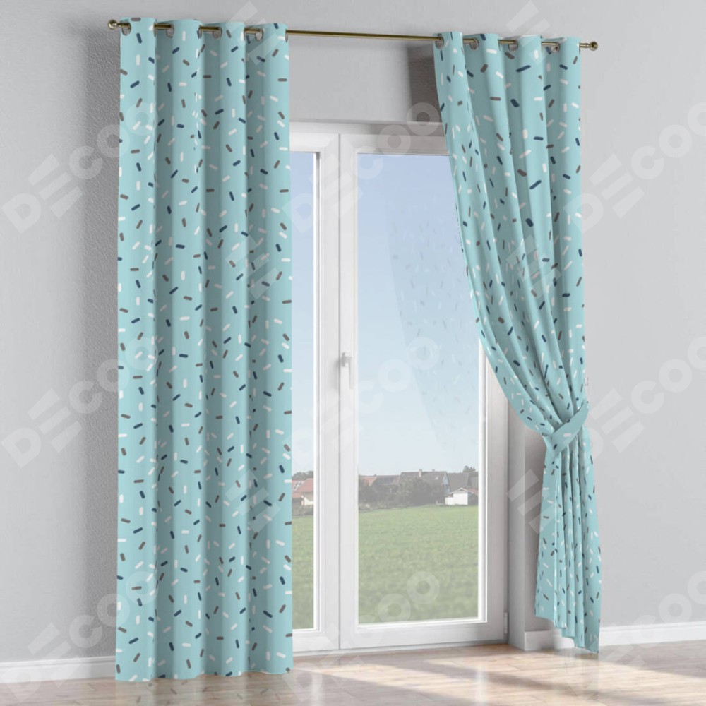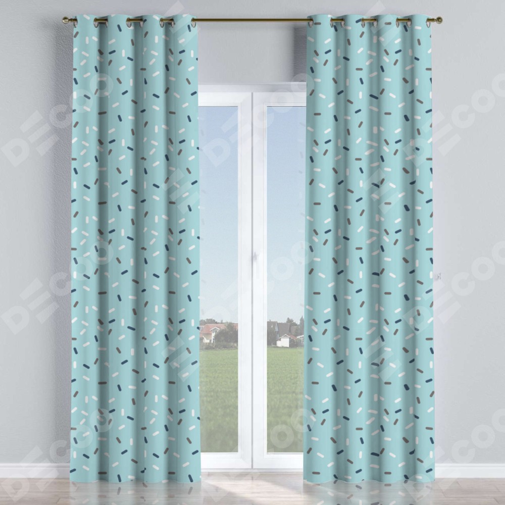 Комплект прямых штор, от производителя «Cortin», пошиты из ткани блэкаут с нанесением сублимационной печати «Короткие линии». Данная модель пошита на люверсах, комплектуется на выбор круглым карнизом и подходит для монтажа на стену или потолок. Прямые шторы на люверсах шьются по стандарту с коэффициентом 1/2 (на 100 см. ширины проёма 200 см. ширины ткани), отличительным преимуществом данной модели является простой способ монтажа. Достаточно повесить ее на трубу и штора готова!