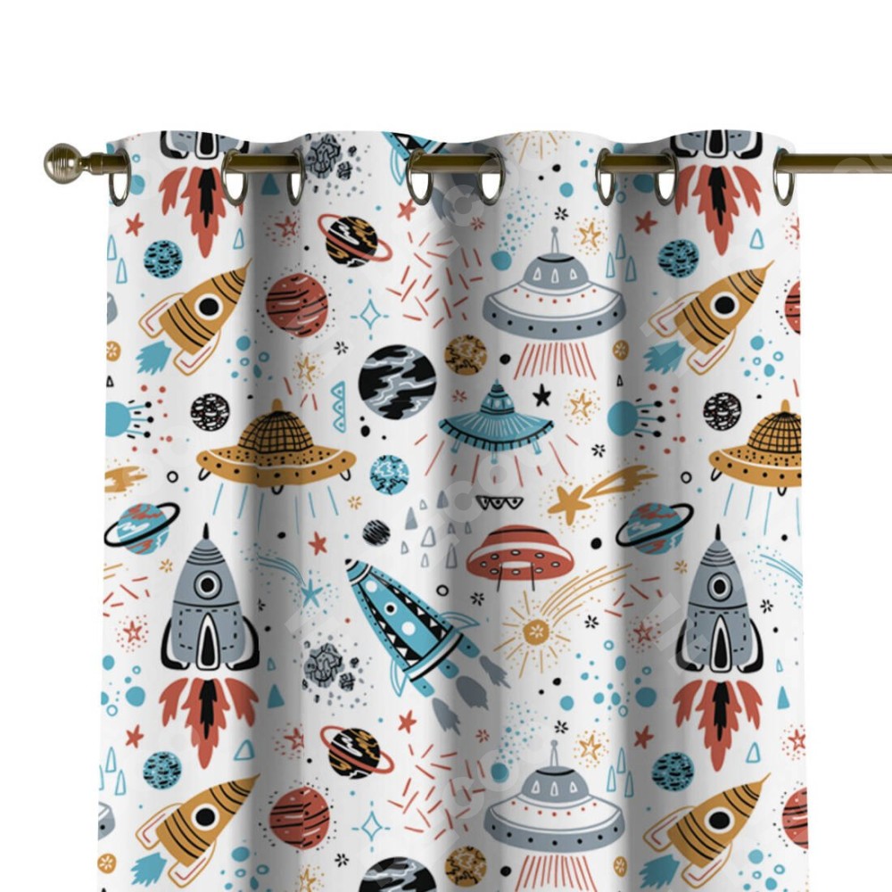 Комплект прямых штор, от производителя «Cortin», пошиты из ткани блэкаут с нанесением сублимационной печати «Космическое приключение». Данная модель пошита на люверсах, комплектуется на выбор круглым карнизом и подходит для монтажа на стену или потолок. Прямые шторы на люверсах шьются по стандарту с коэффициентом 1/2 (на 100 см. ширины проёма 200 см. ширины ткани), отличительным преимуществом данной модели является простой способ монтажа. Достаточно повесить ее на трубу и штора готова!