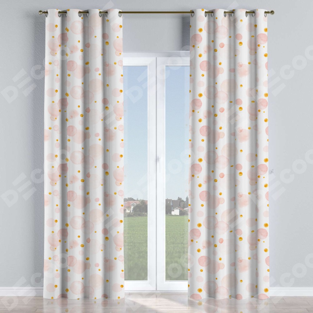 Комплект прямых штор, от производителя «Cortin», пошиты из ткани блэкаут с нанесением сублимационной печати «Круги и точки». Данная модель пошита на люверсах, комплектуется на выбор круглым карнизом и подходит для монтажа на стену или потолок. Прямые шторы на люверсах шьются по стандарту с коэффициентом 1/2 (на 100 см. ширины проёма 200 см. ширины ткани), отличительным преимуществом данной модели является простой способ монтажа. Достаточно повесить ее на трубу и штора готова!
