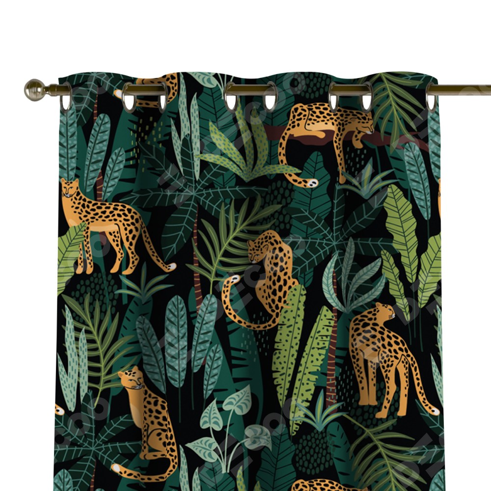 Комплект прямых штор, от производителя «Cortin», пошиты из ткани блэкаут с нанесением сублимационной печати «Леопарды в джунглях». Данная модель пошита на люверсах, комплектуется на выбор круглым карнизом и подходит для монтажа на стену или потолок. Прямые шторы на люверсах шьются по стандарту с коэффициентом 1/2 (на 100 см. ширины проёма 200 см. ширины ткани), отличительным преимуществом данной модели является простой способ монтажа. Достаточно повесить ее на трубу и штора готова!