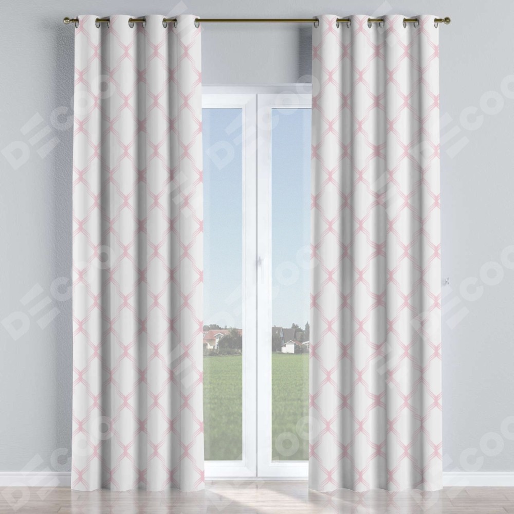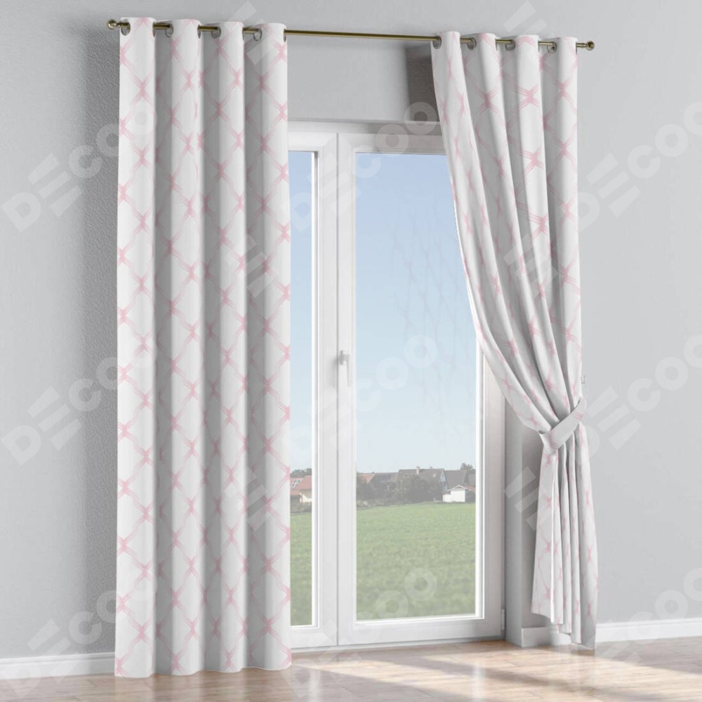 Комплект прямых штор, от производителя «Cortin», пошиты из ткани блэкаут с нанесением сублимационной печати «Розовые ромбы». Данная модель пошита на люверсах, комплектуется на выбор круглым карнизом и подходит для монтажа на стену или потолок. Прямые шторы на люверсах шьются по стандарту с коэффициентом 1/2 (на 100 см. ширины проёма 200 см. ширины ткани), отличительным преимуществом данной модели является простой способ монтажа. Достаточно повесить ее на трубу и штора готова!