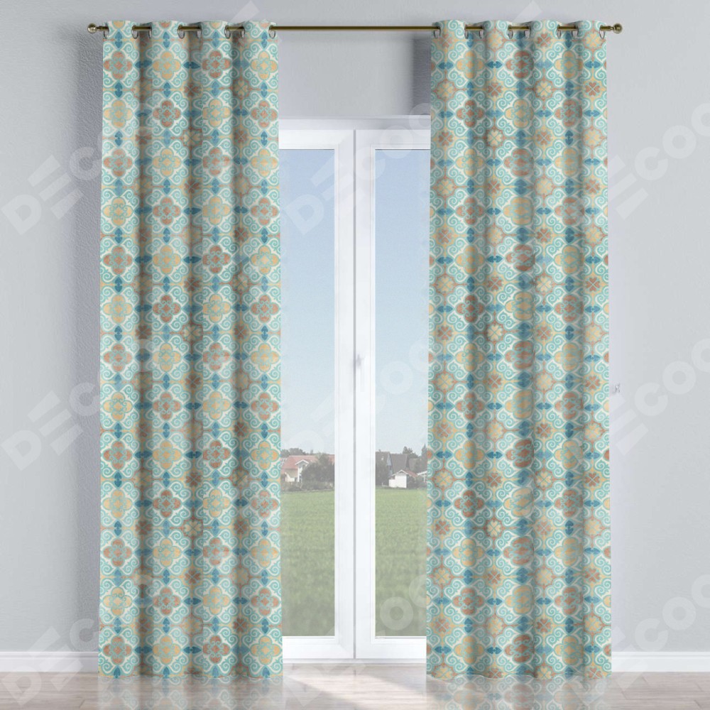 Комплект прямых штор, от производителя «Cortin», пошиты из ткани блэкаут с нанесением сублимационной печати «Фарида». Данная модель пошита на люверсах, комплектуется на выбор круглым карнизом и подходит для монтажа на стену или потолок. Прямые шторы на люверсах шьются по стандарту с коэффициентом 1/2 (на 100 см. ширины проёма 200 см. ширины ткани), отличительным преимуществом данной модели является простой способ монтажа. Достаточно повесить ее на трубу и штора готова!
