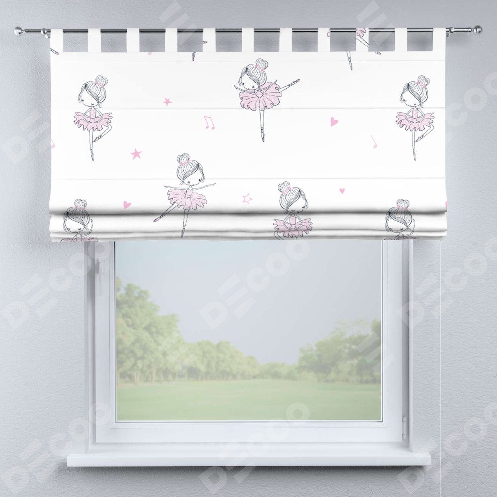 Римская штора производителя «Cortin», используется для проёма, пошита из ткани блэкаут с нанесением сублимационной печати «Маленькая балерина». Данная модель пошита на петлях, комплектуется на выбор круглым карнизом и подходит для монтажа на стену. Римская штора на петлях имеет простую систему регулировки высоты, отличительным преимуществом данной модели является простой способ монтажа. Достаточно повесить ее на трубу и штора готова!
