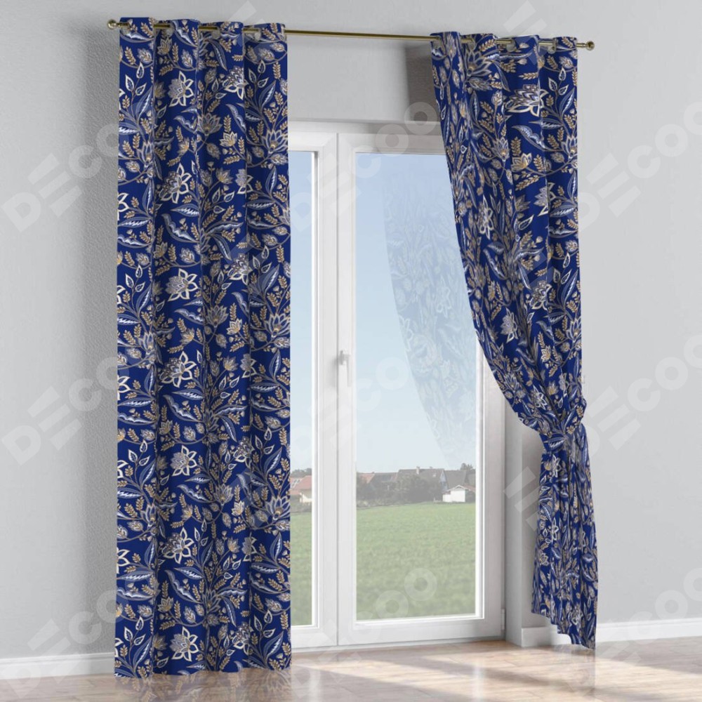 Комплект прямых штор, от производителя «Cortin», пошиты из ткани блэкаут с нанесением сублимационной печати «Индиго батик». Данная модель пошита на люверсах, комплектуется на выбор круглым карнизом и подходит для монтажа на стену или потолок. Прямые шторы на люверсах шьются по стандарту с коэффициентом 1/2 (на 100 см. ширины проёма 200 см. ширины ткани), отличительным преимуществом данной модели является простой способ монтажа. Достаточно повесить ее на трубу и штора готова!