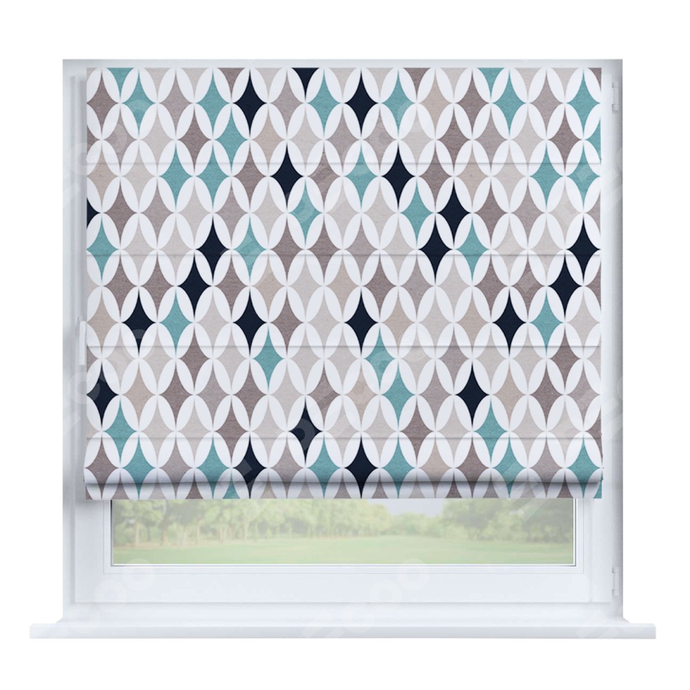 Римская штора производителя «Cortin», устанавливается на створку окна, пошита из ткани блэкаут с нанесением сублимационной печати «Орнамент кристалл». Штора шьётся по индивидуальным размерам, для данного типа римской шторы возможная ширина от 35 до 150 см., высота до 250 см.