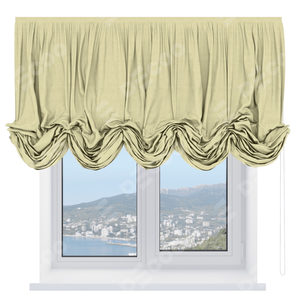 Австрийская штора производителя «Cortin», используется для проёма, пошита из ткани софт однотонный молочный, артикул ткани 11938. Имеет универсальный механизм и подходит для монтажа: на потолок и на стену.