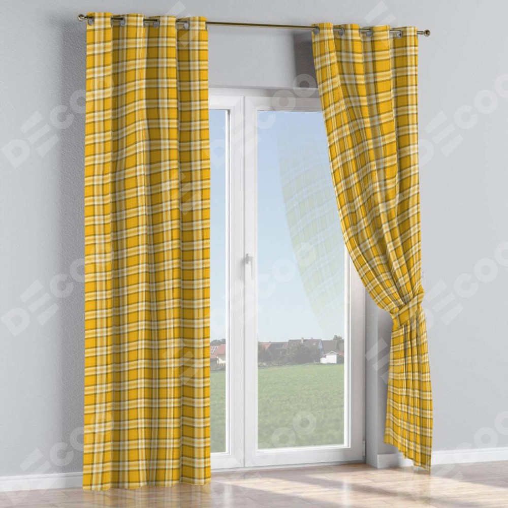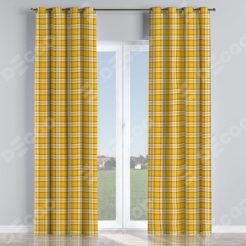 Комплект штор на люверсах «Желто-горчичная клетка»