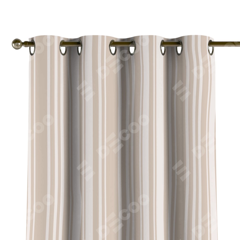 Комплект прямых штор, от производителя «Cortin», пошиты из ткани блэкаут с нанесением сублимационной печати «Бежевые вертикальные полоски». Данная модель пошита на люверсах, комплектуется на выбор круглым карнизом и подходит для монтажа на стену или потолок. Прямые шторы на люверсах шьются по стандарту с коэффициентом 1/2 (на 100 см. ширины проёма 200 см. ширины ткани), отличительным преимуществом данной модели является простой способ монтажа. Достаточно повесить ее на трубу и штора готова!