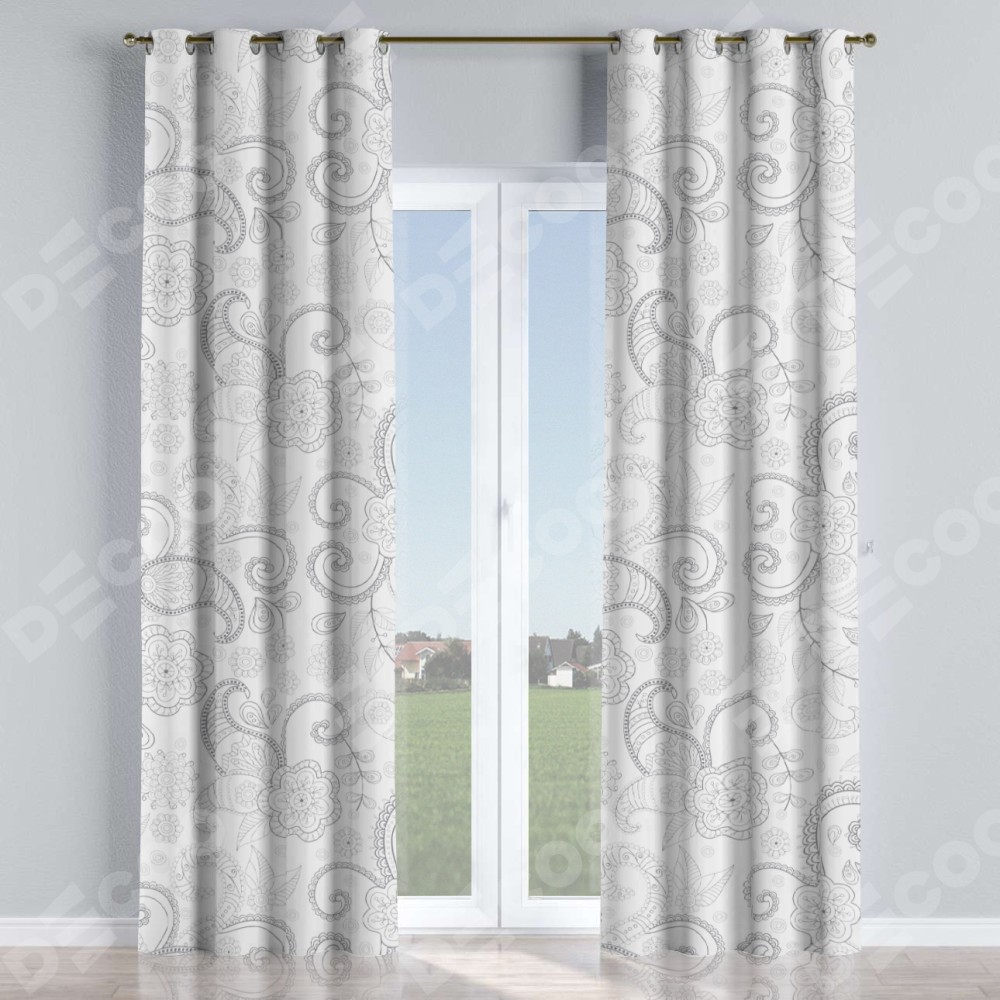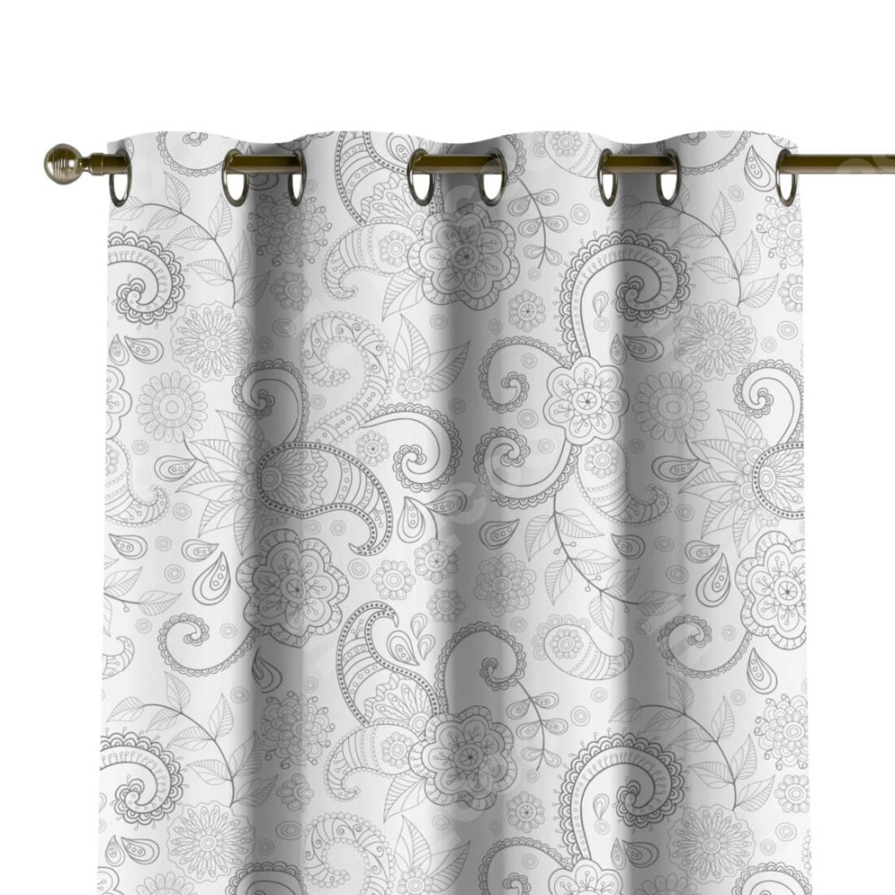 Комплект прямых штор, от производителя «Cortin», пошиты из ткани блэкаут с нанесением сублимационной печати «Изысканный пейсли». Данная модель пошита на люверсах, комплектуется на выбор круглым карнизом и подходит для монтажа на стену или потолок. Прямые шторы на люверсах шьются по стандарту с коэффициентом 1/2 (на 100 см. ширины проёма 200 см. ширины ткани), отличительным преимуществом данной модели является простой способ монтажа. Достаточно повесить ее на трубу и штора готова!