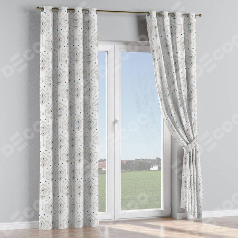 Комплект прямых штор, от производителя «Cortin», пошиты из ткани блэкаут с нанесением сублимационной печати «Икат узор». Данная модель пошита на люверсах, комплектуется на выбор круглым карнизом и подходит для монтажа на стену или потолок. Прямые шторы на люверсах шьются по стандарту с коэффициентом 1/2 (на 100 см. ширины проёма 200 см. ширины ткани), отличительным преимуществом данной модели является простой способ монтажа. Достаточно повесить ее на трубу и штора готова!