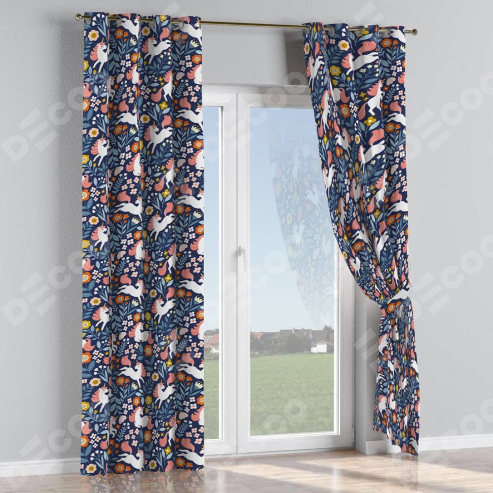 Комплект прямых штор, от производителя «Cortin», пошиты из ткани блэкаут с нанесением сублимационной печати «Цветы и единороги». Данная модель пошита на люверсах, комплектуется на выбор круглым карнизом и подходит для монтажа на стену или потолок. Прямые шторы на люверсах шьются по стандарту с коэффициентом 1/2 (на 100 см. ширины проёма 200 см. ширины ткани), отличительным преимуществом данной модели является простой способ монтажа. Достаточно повесить ее на трубу и штора готова!