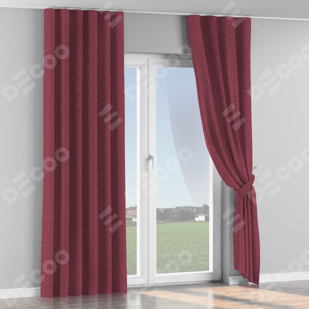 Комплект прямых штор, от производителя «Cortin», пошиты из ткани лён димаут марсала, артикул ткани 1602. С изнаночной стороны в верхней части штор пристрачивается шторная лента с декоративными складками «Волна». Для создания элегантных складок прямые шторы шьются по стандарту с коэффициентом 1:2 (на 100 см. ширины проёма 200 см. ширины ткани).