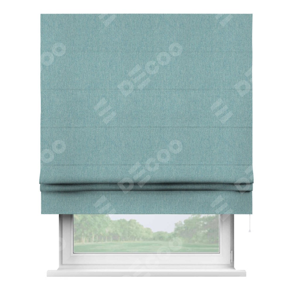 Римская штора «Кортин» для проема, ткань твид блэкаут, небесно-голубой