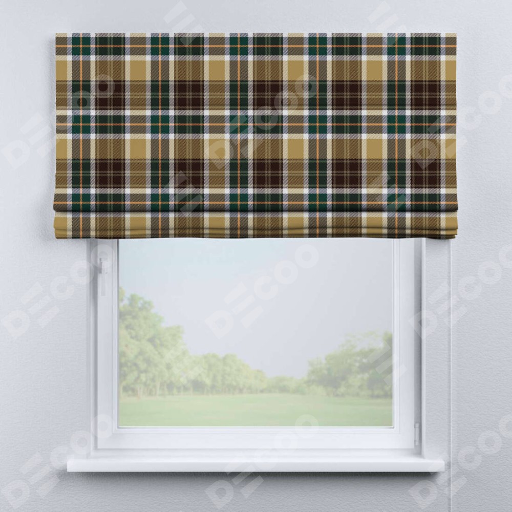 Римская штора «Кортин» для проема «Бежево-зелёная клетка»