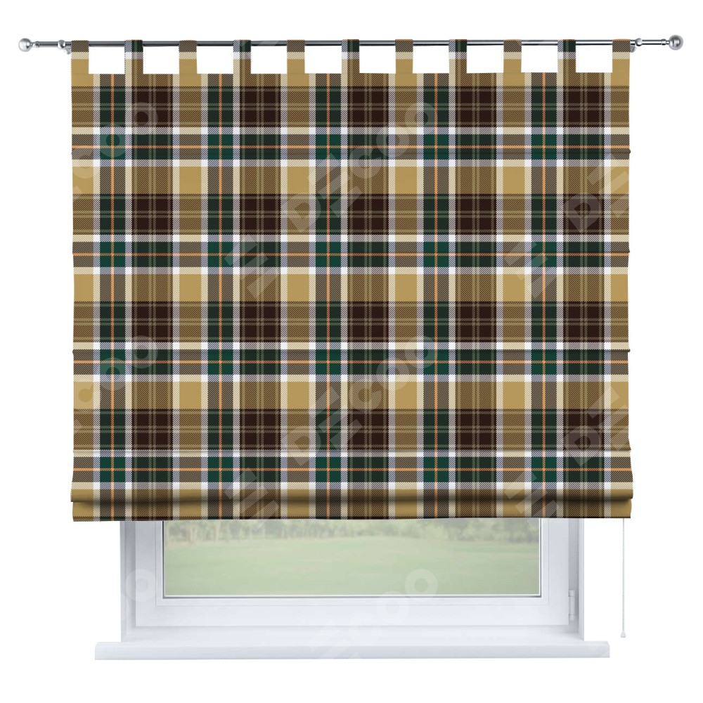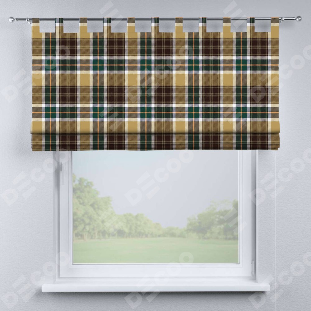 Римская штора на петлях «Бежево-зелёная клетка»