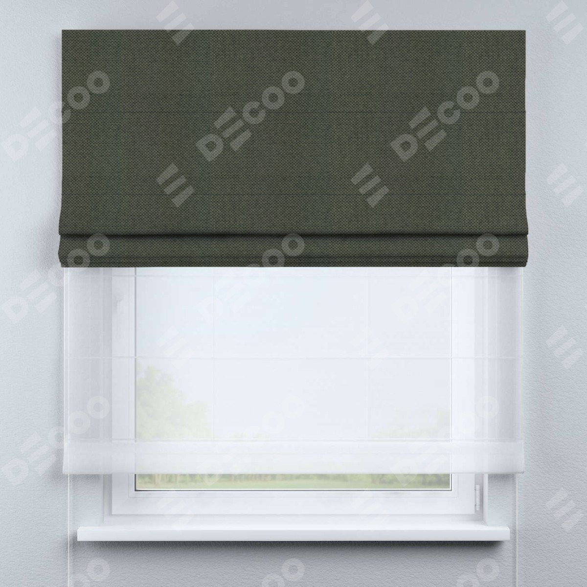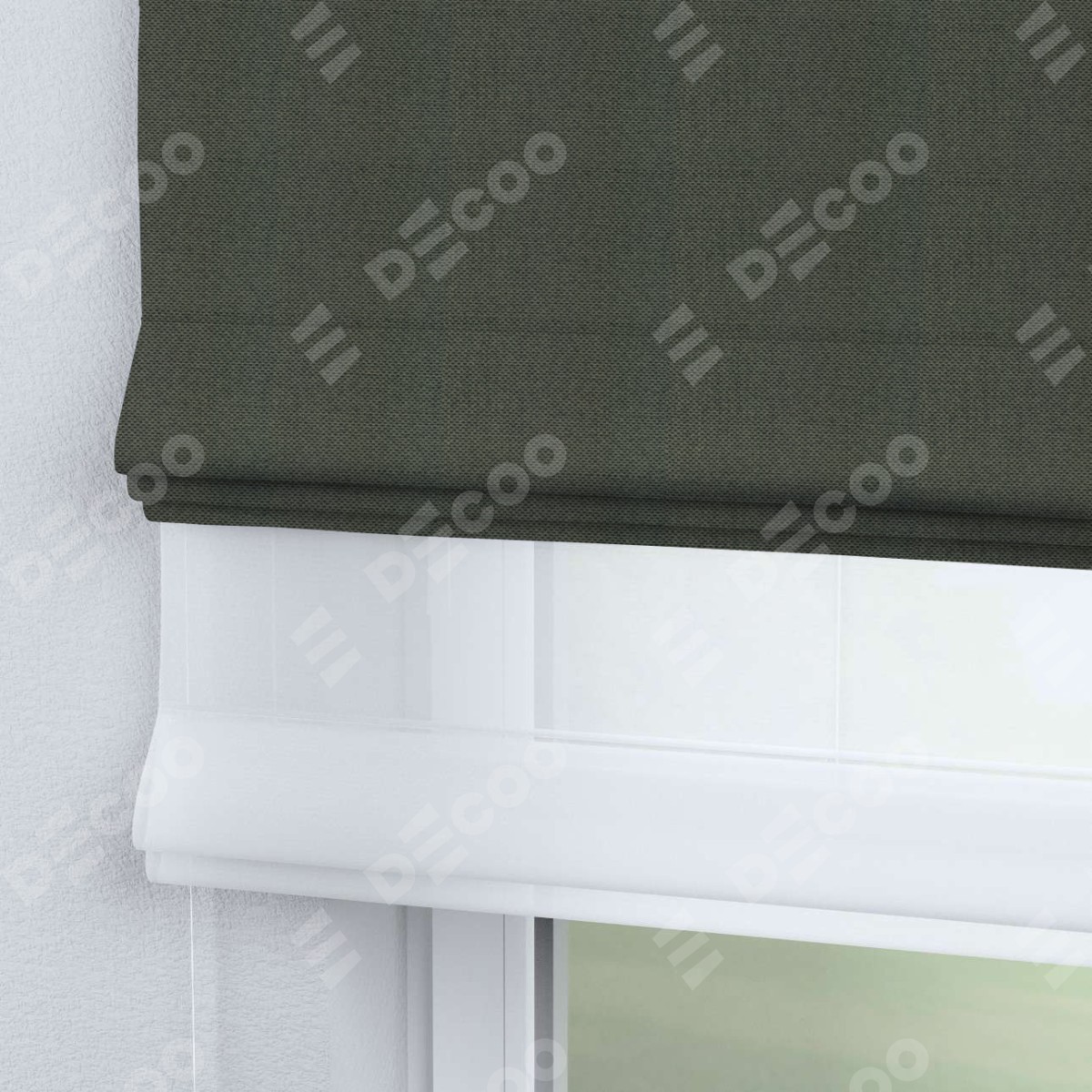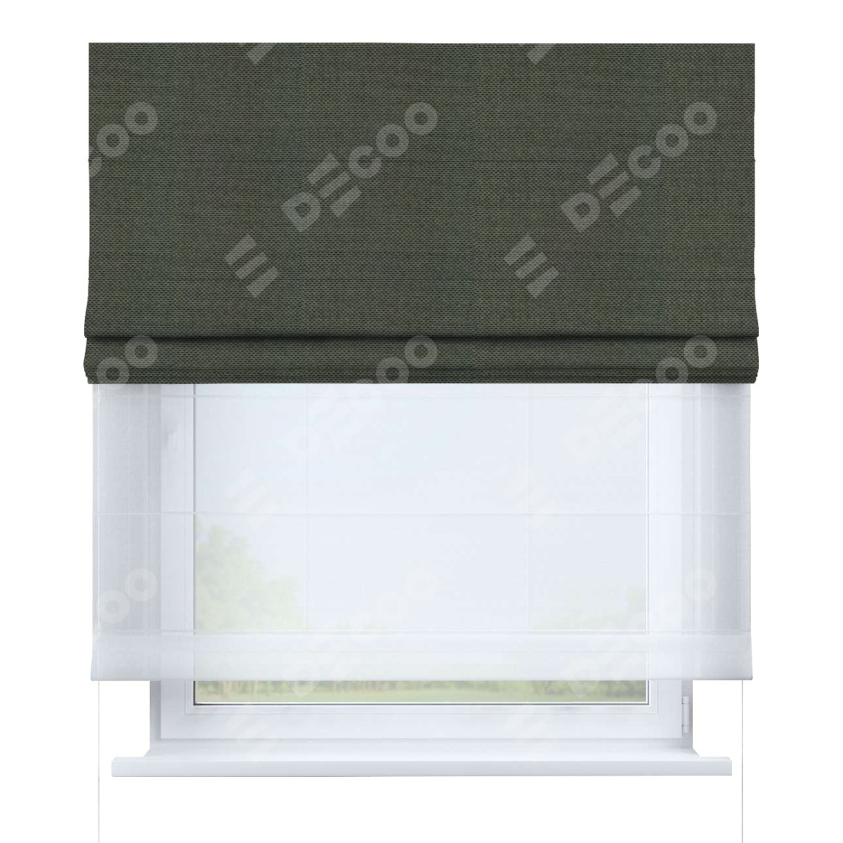 Римская штора день-ночь производителя «Cortin», используется для проёма, пошита из двух полотен, с лицевой стороны лён димаут графит артикул 27, вторая ткань тюль (по стандарту комплектуется тюль белого цвета артикул V-01). Имеет универсальный механизм и подходит для монтажа: на потолок, на стену и в нишу.