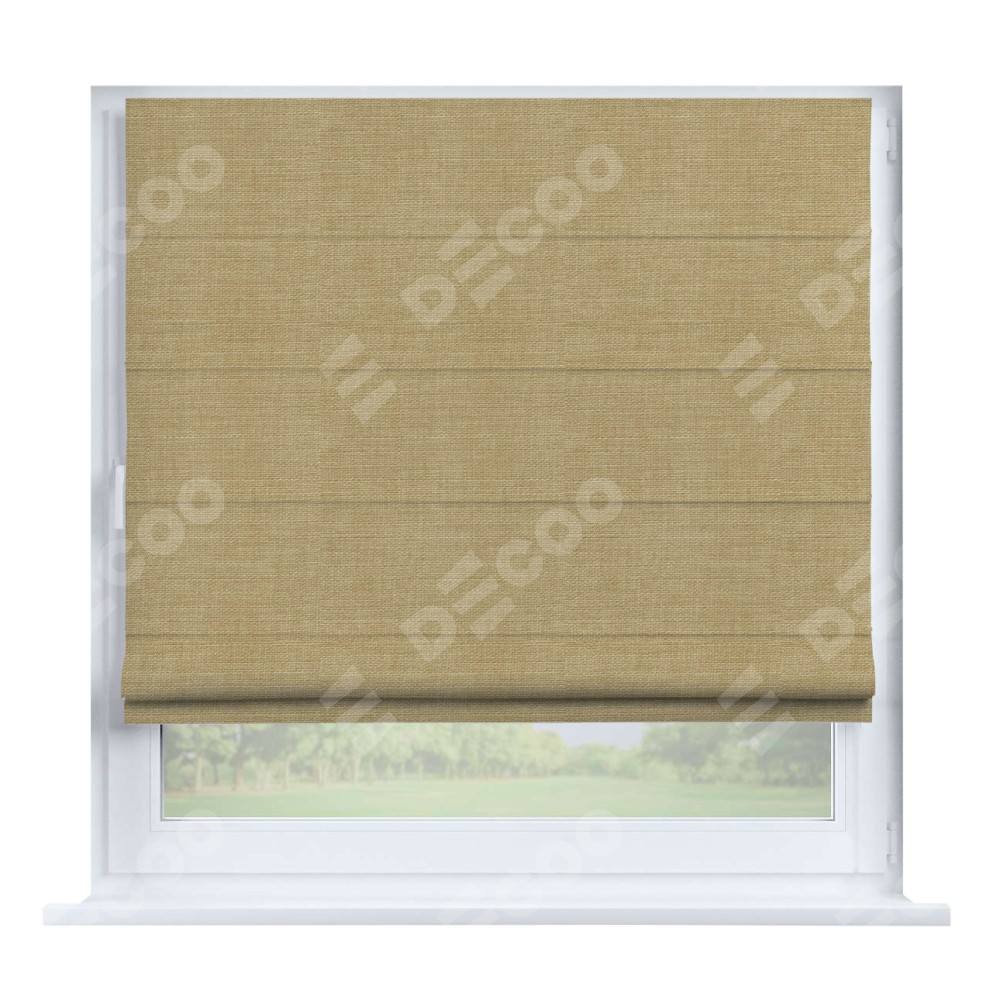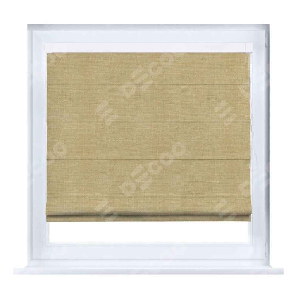 Римская штора производителя «Cortin», устанавливается на створку окна, пошита из ткани лён бежевый, артикул 7442. Штора шьётся по индивидуальным размерам, для данного типа римской шторы возможная ширина от 35 до 150 см., высота до 250 см.